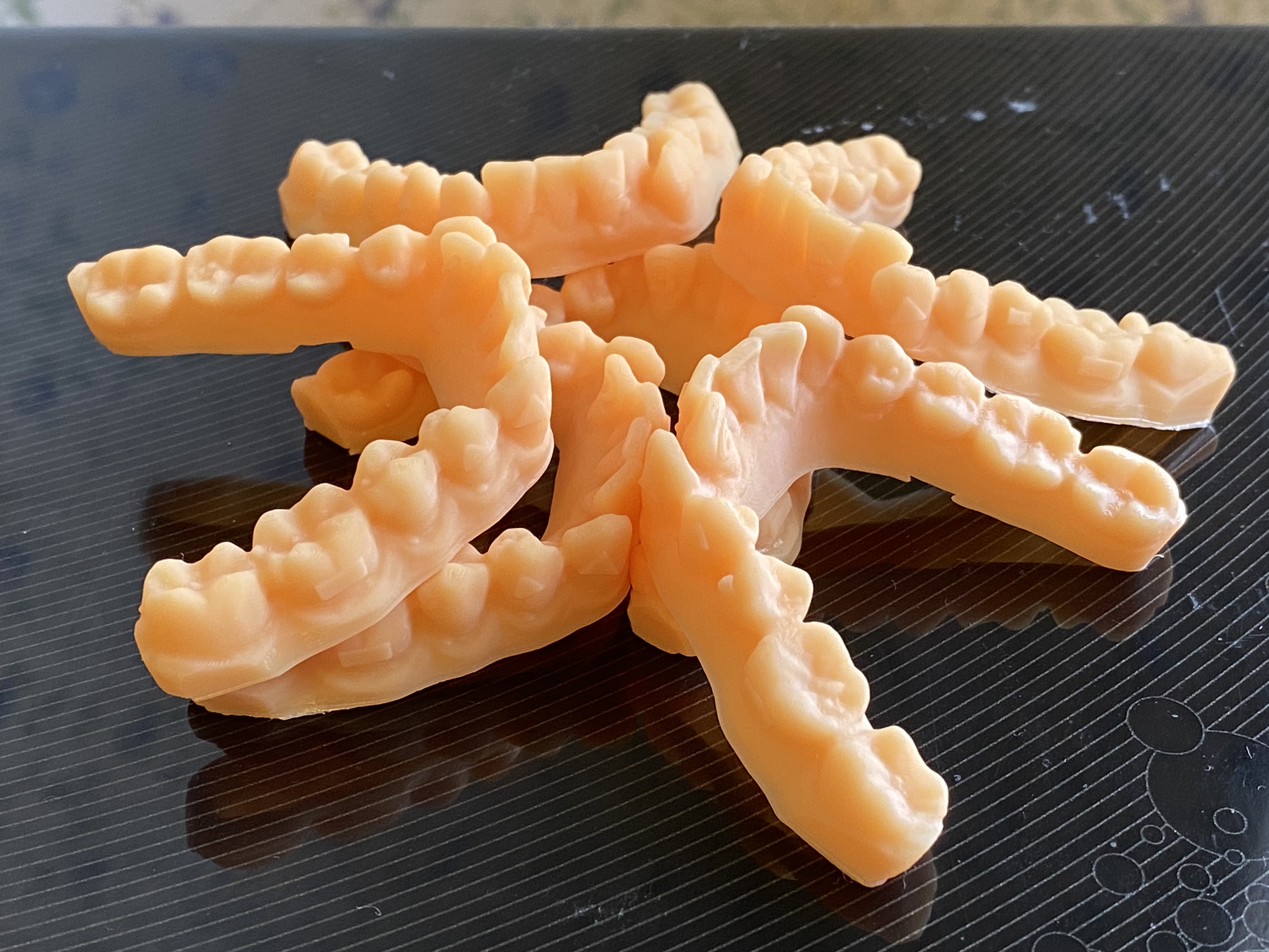 Мастер модели под термоформовку элайнеров. Печатал из полимера Hardlight dental skin слоем 100 мкм, экспозиция 7.5 сек.