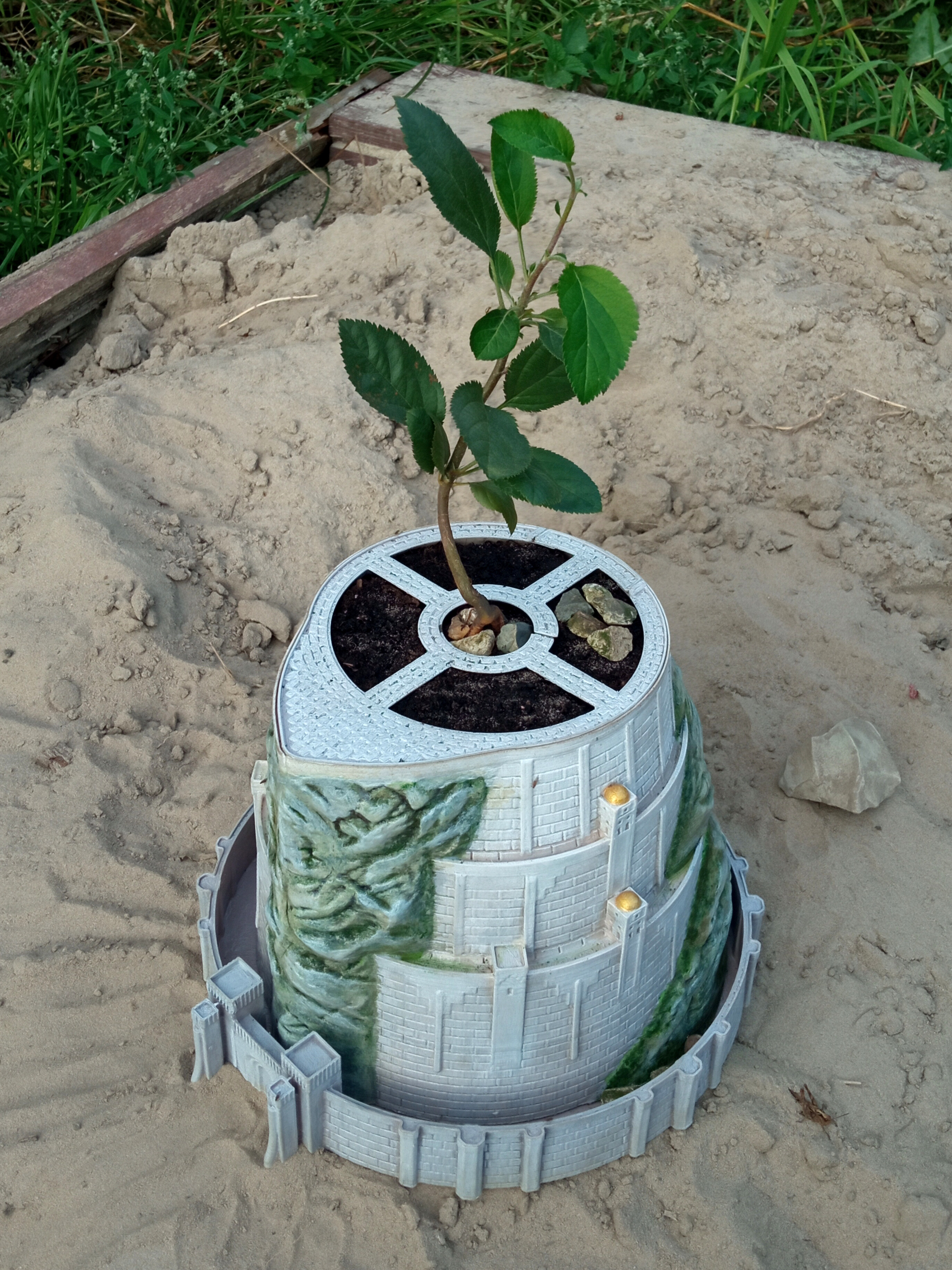 Наконец то воплотил задумку, которая давно не выходила из головы. Кашпо для растения в виде крепости из известного фильма. Ведь там, большое значение имело старое дерево на верхней площадке цитадели.