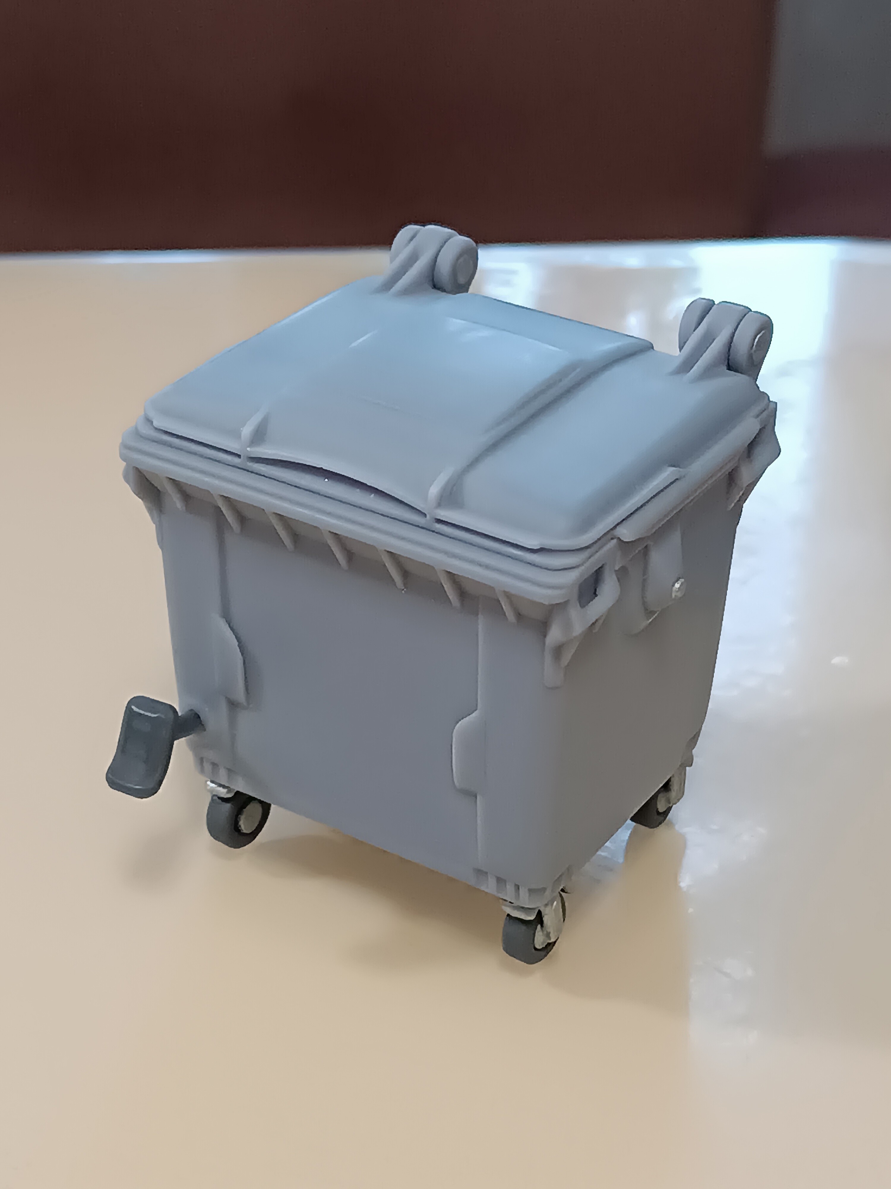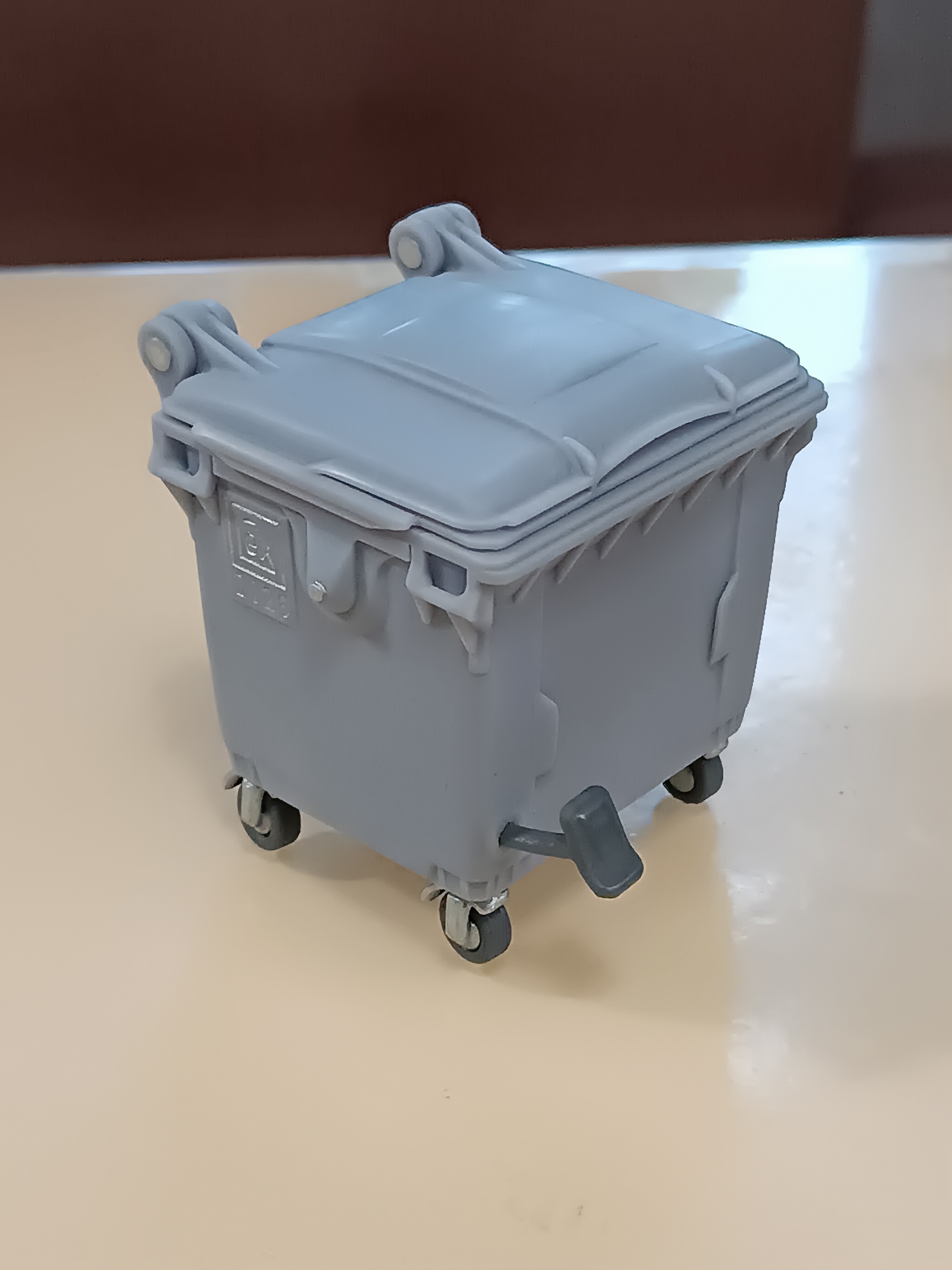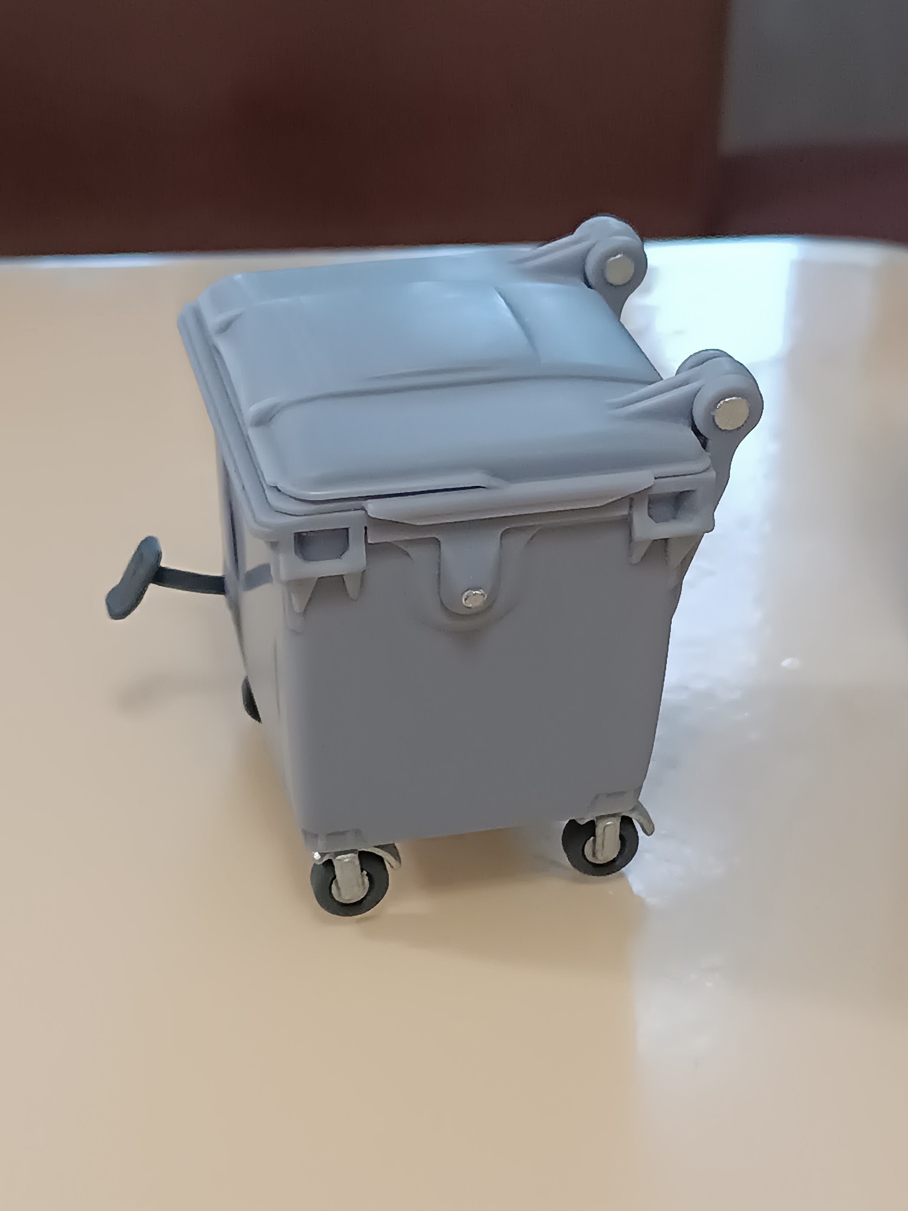 Крышка печатается сразу в сборе с баком, а колеса защелкиваются в дно.