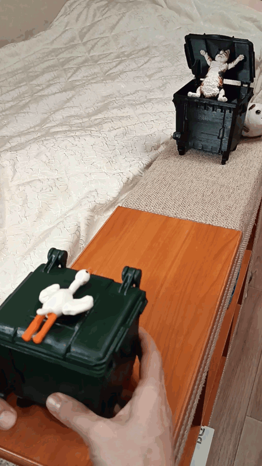 Решил что для настольной мусорницы, которую делал раньше, просто необходима кнопка для распахивания крышки. Получилась, как мне кажется, довольно забавная вещица. Кнопка-рычаг распахивает и захлопывает крышку с небольшим щелчком. Чем то напоминает зажигалку. Распечатал из фотополимера Hardlight ENGINEER GF Серый. Немного еще полирнул и подкрасил некоторые части серебристой акриловой краской.