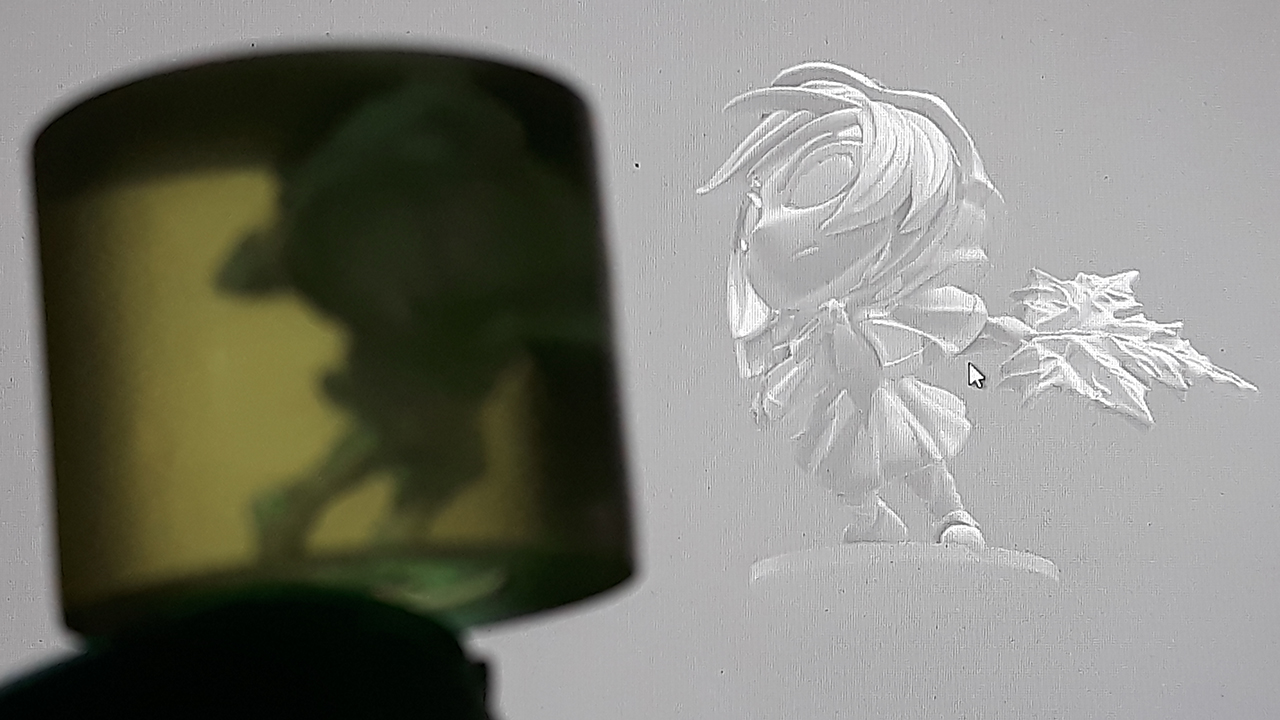 Фигурка была уменьшена. Детализация пострадала, но даже листик в руке получился слабо различимый.