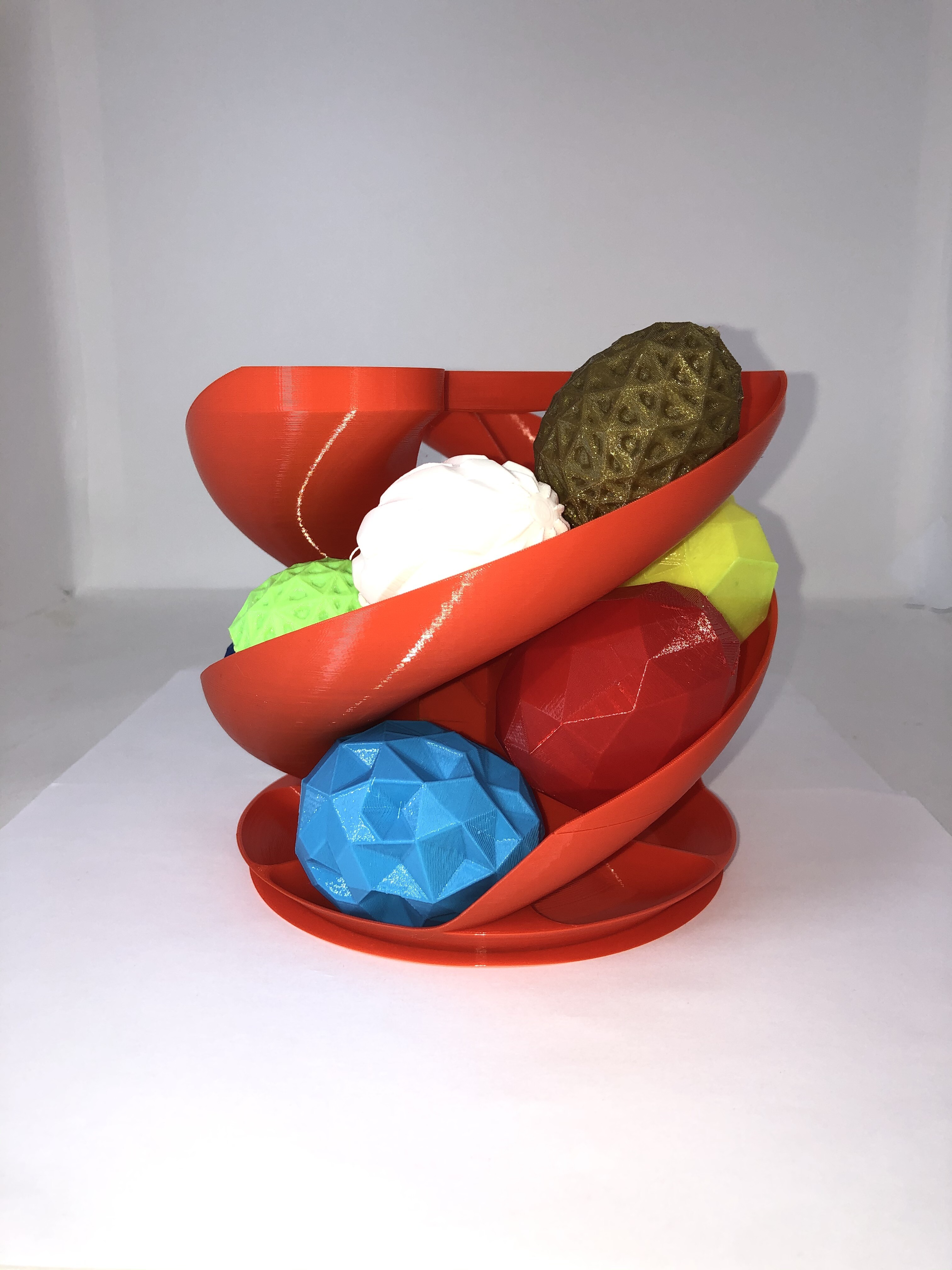 Следующие модели были напечатаны из PETG пластика следующих цветов: Белый, Жёлтый, Жёлтый флуоресцентный, Салатовый, Голубой, Красный, Синий, Бронзовый металлик. Печать проводилась на 3D-принтерах : Ender 3v.2; Anycubic Kossel Plus и Bizon Prusa i3