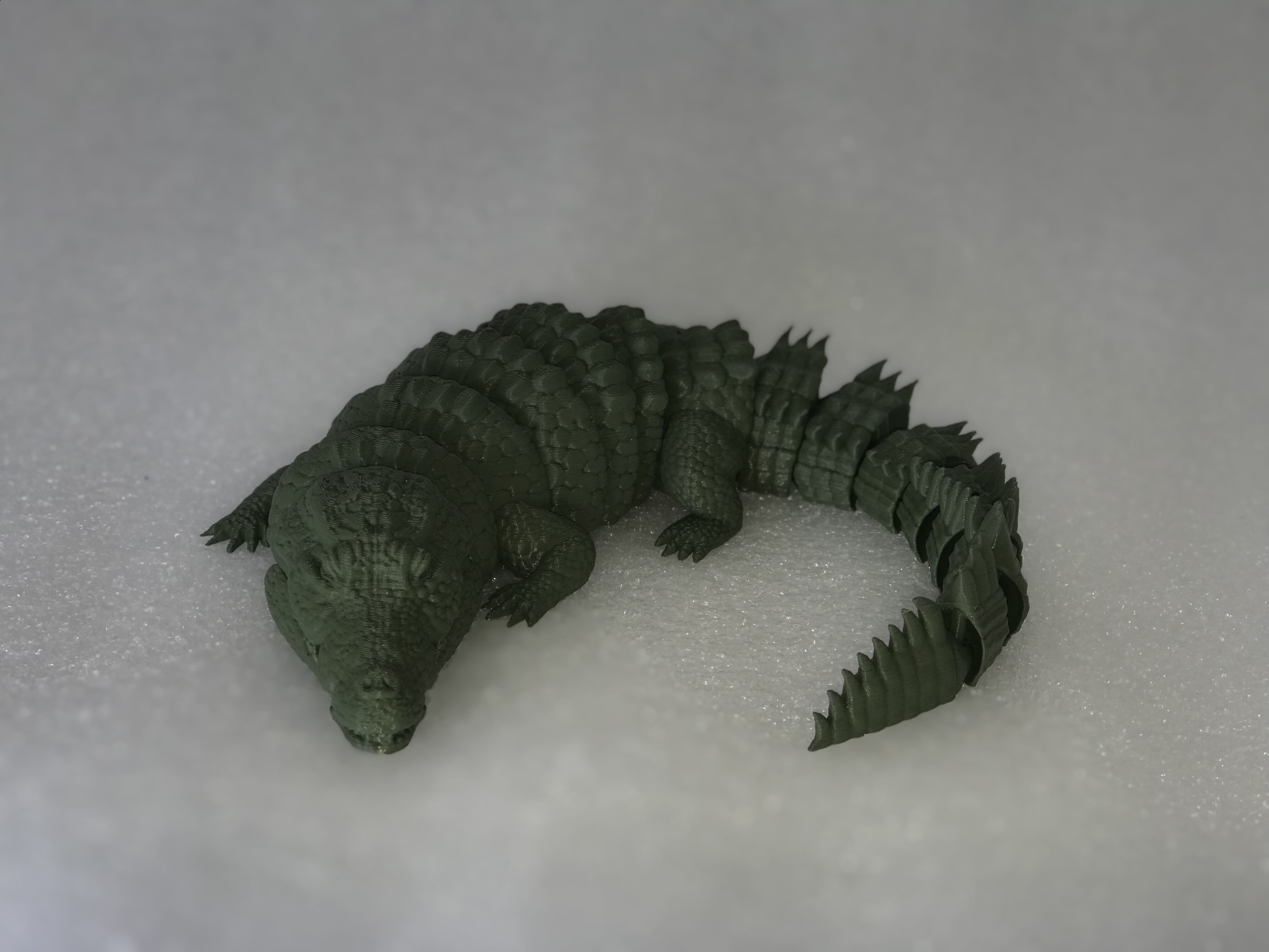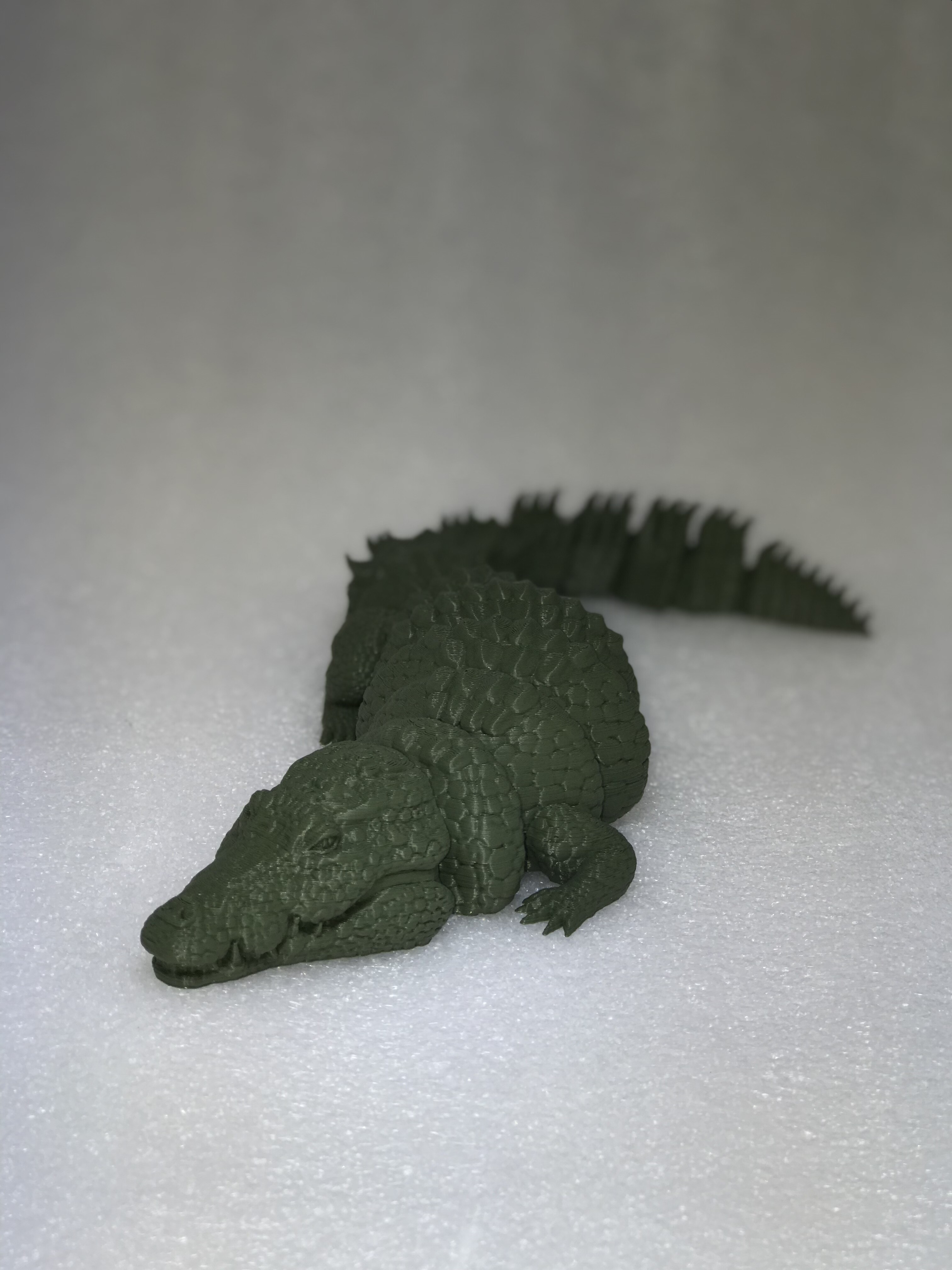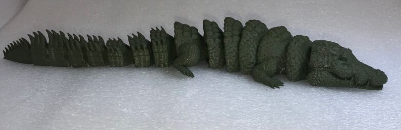 Сегодня, для примера, напечатали из PLA филамента цвета Хаки подвижную модельку крокодила