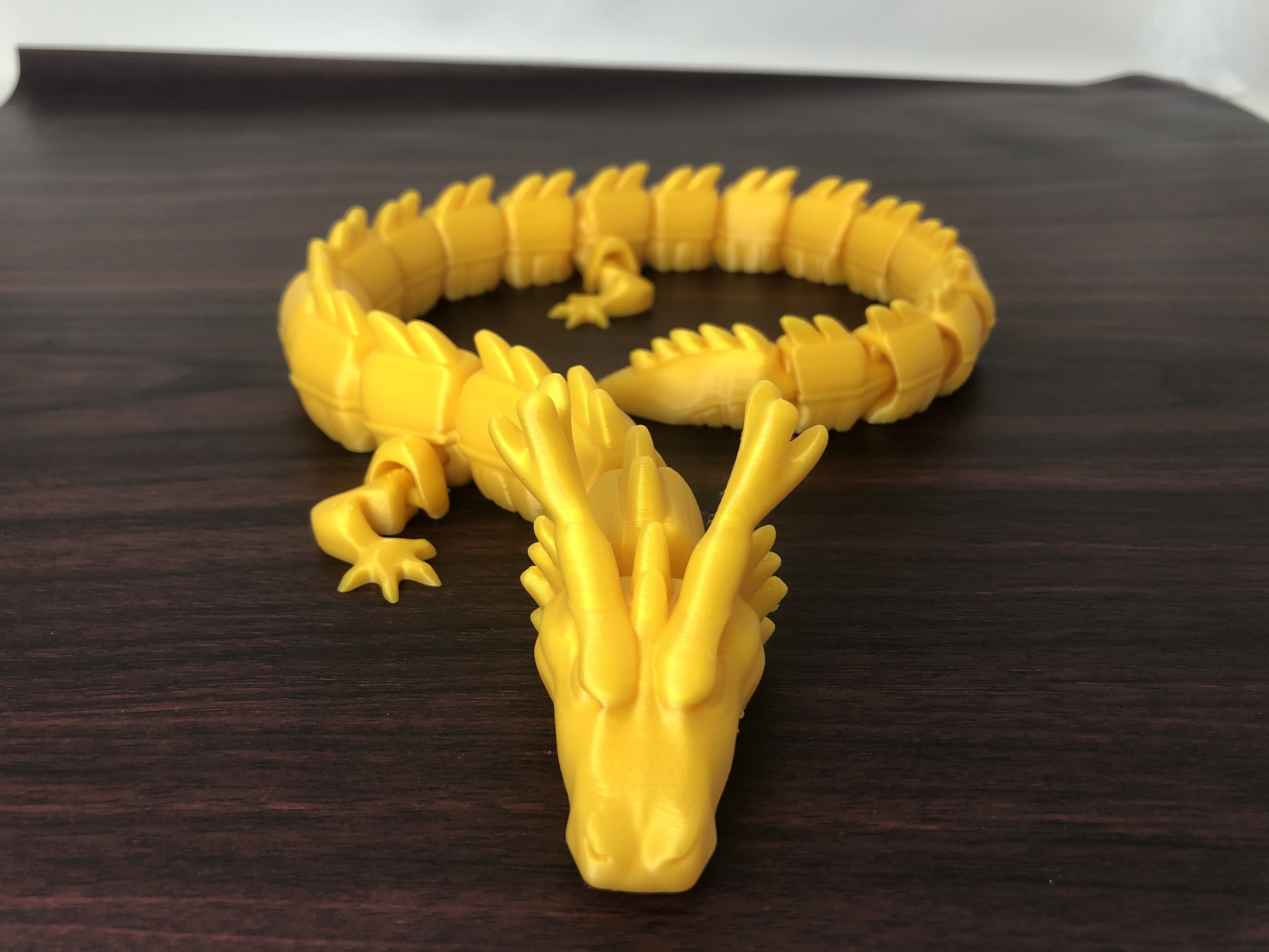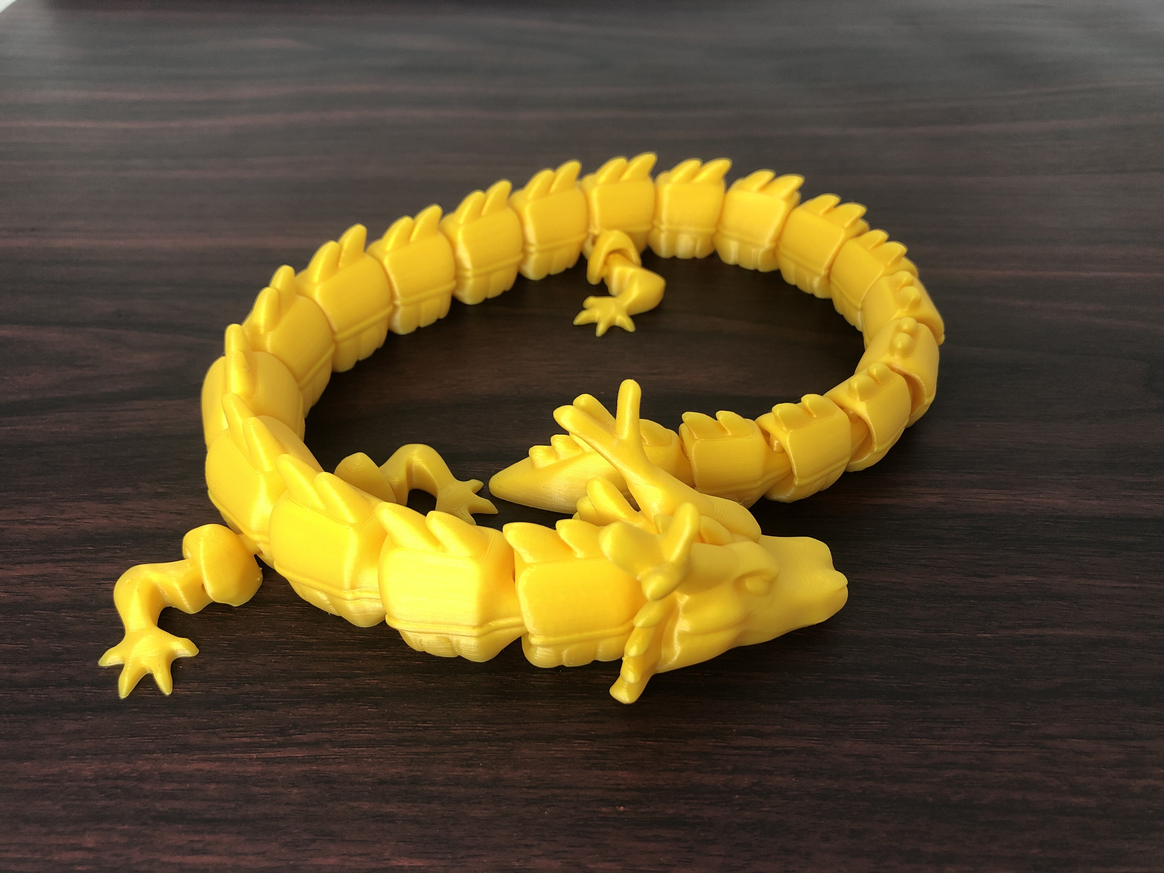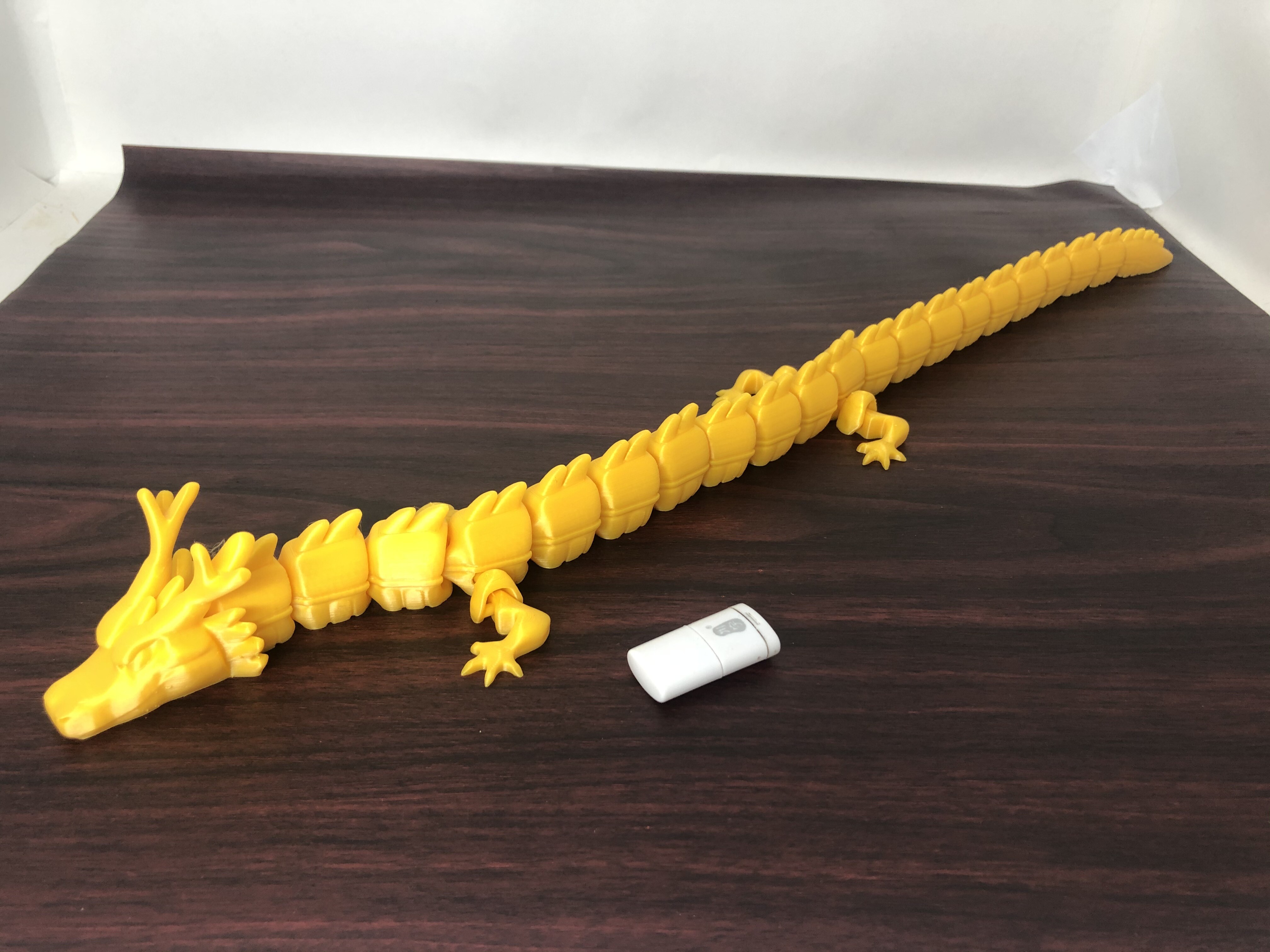 Сегодня напечатали очень длинного змеевидного дракона, состоящего из подвижных частей.