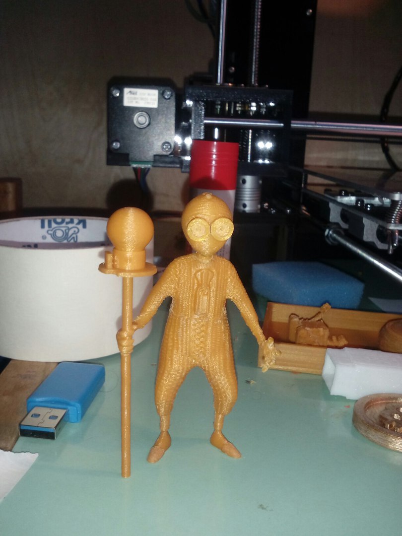 После сборки и печати тестовых безделушек сразу появилось желание сделать что-то действительно интересное. Тут же отправляюсь за поисками моделей. Прошел час поисков, и я наткнулся на фигурку и не мог оставить ее без внимания. Персонаж из очень идейного мультфильма '9'. Фигурка по задумке должна выглядеть живой. Был разобран старый фонарик, под лампочку смоделирован новый патрон. За вечер все было распечатано и покрашено. Девятый занял свое место на полке и будет следить своими большими глазами за процессами творчества.