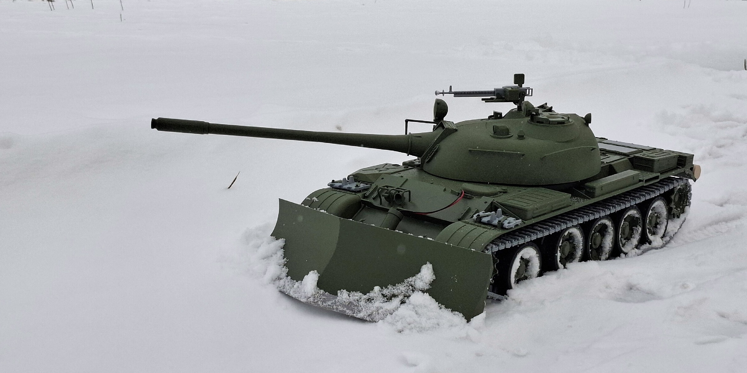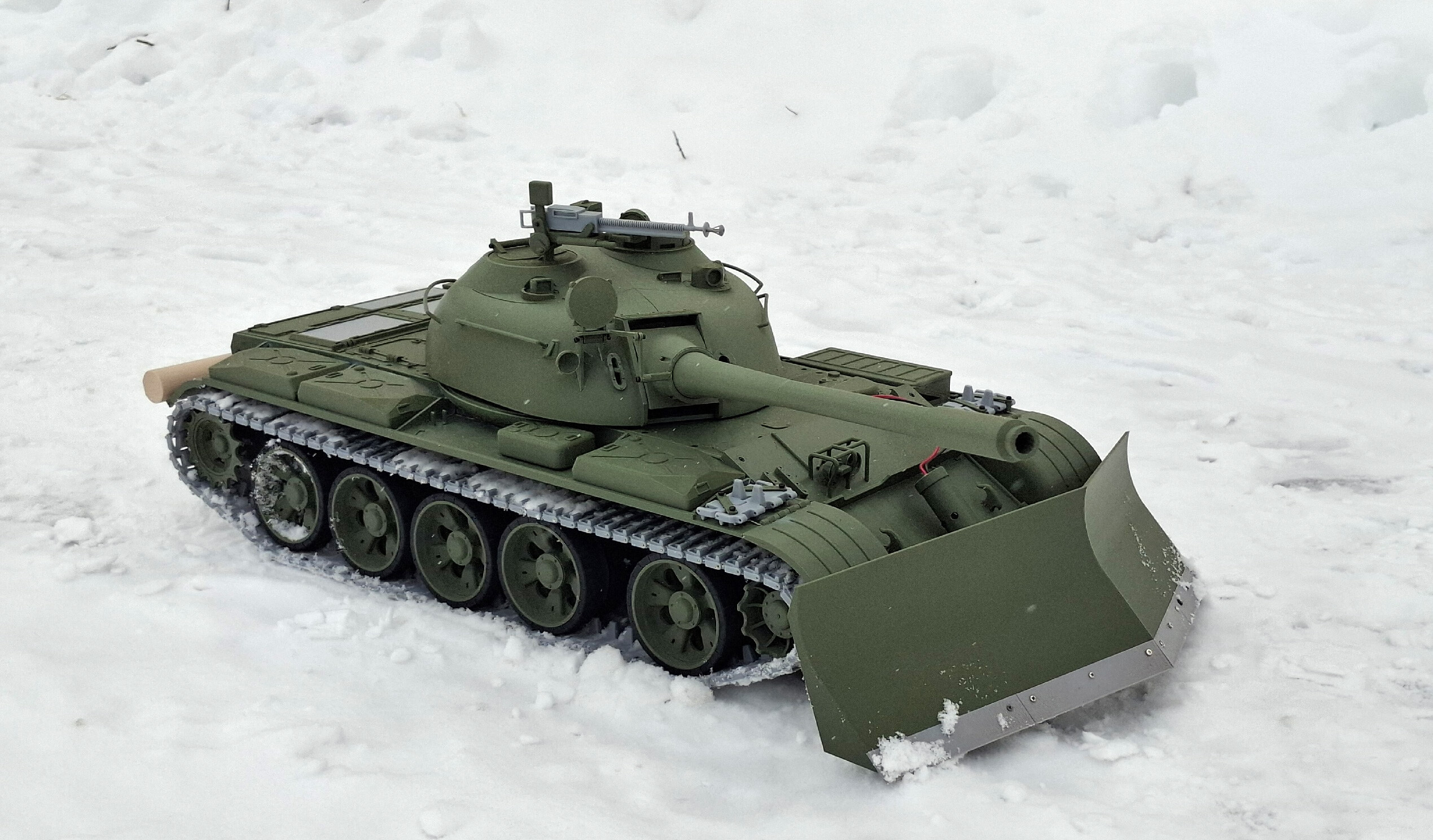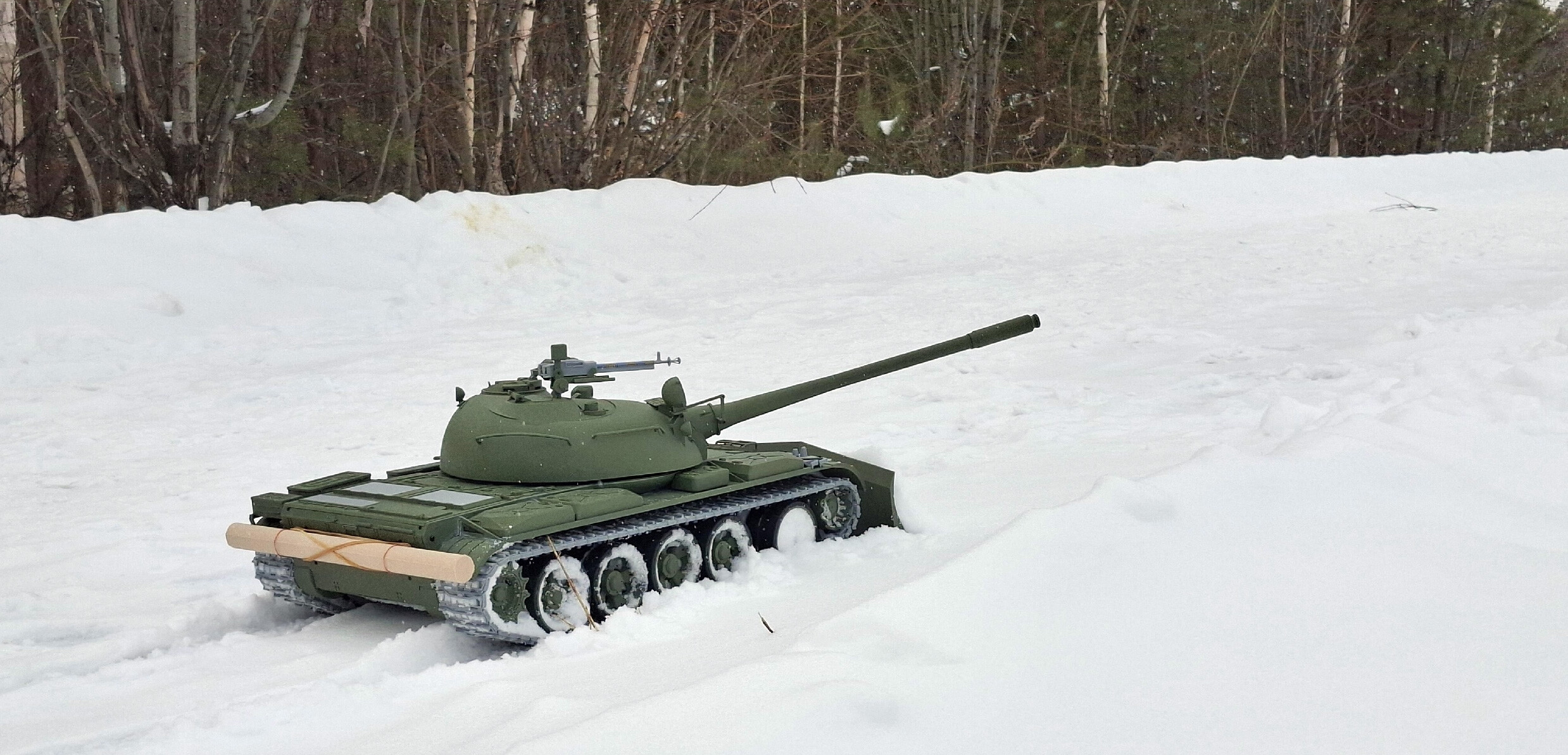 В целом модель получилась поинтересней Т-44, как за счёт того, что прототип более современный, так и за счёт просто невероятного распространения прототипа - что-то вроде автомата Калашникова в мире танков. Один из вариантов навески в виде отвала сразу воплотил и долго ждал, когда выпадет снег, чтобы опробовать его в деле.