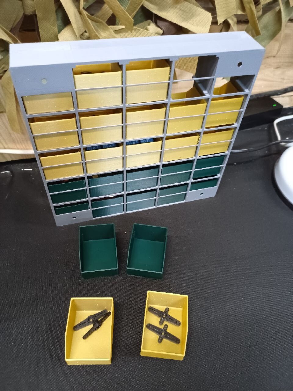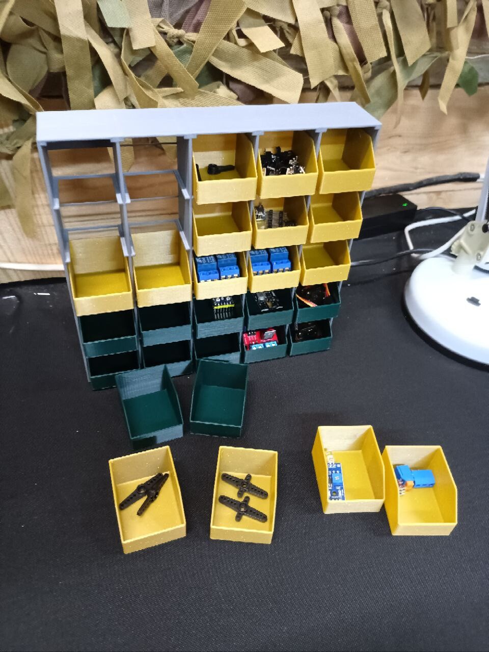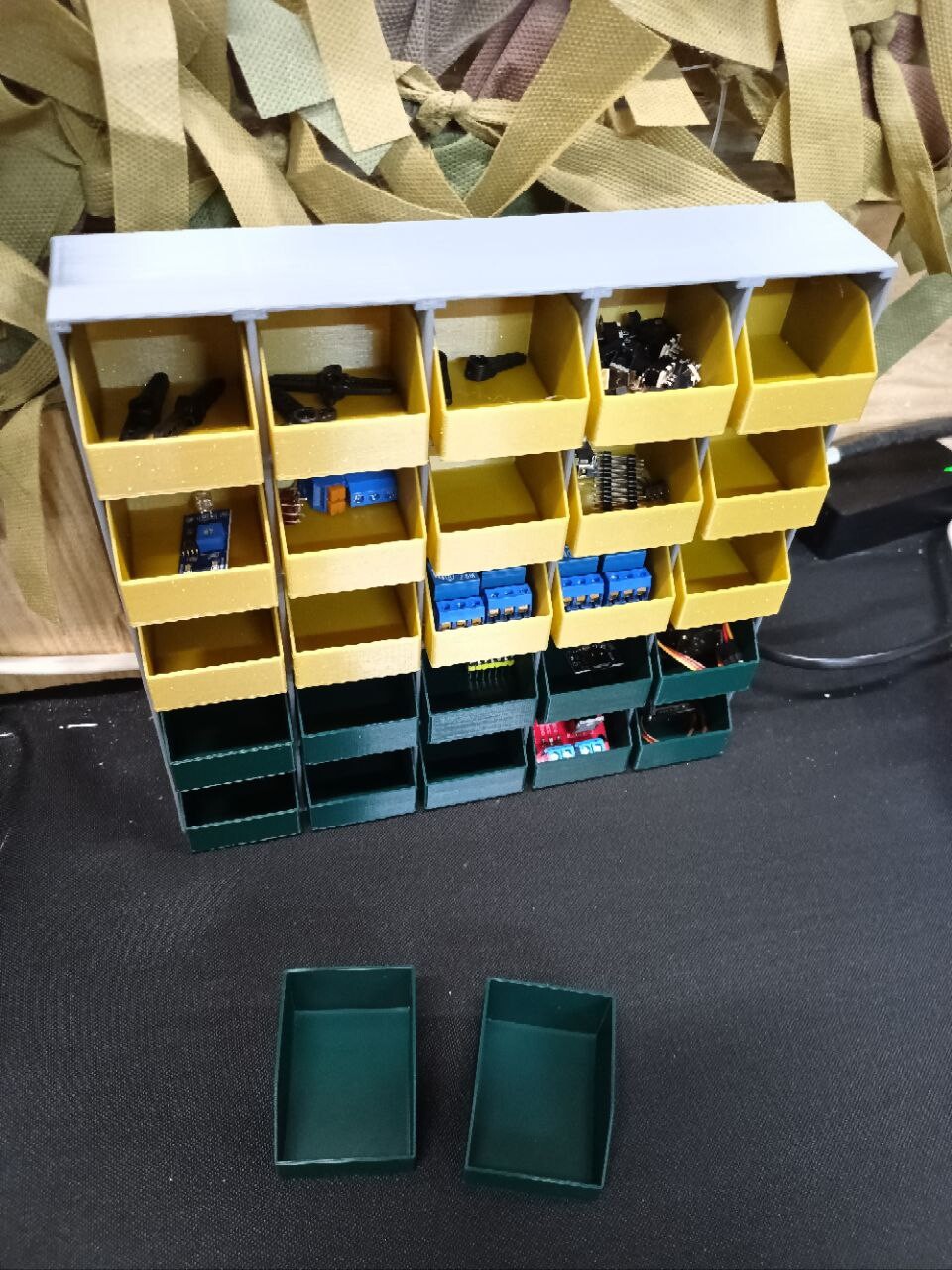 Так получилось, что приходится работать с ардуино и сопутствующей электроникой, мелочи электронной на сотни позиций, плюс болтики и т.п. Заказать не вариант было, магазинов рядом нет, а пластик есть. По итогу получилась такая вот конструкция, ее можно повесит на стену или поставить на стол. В целом оказалось удобно.