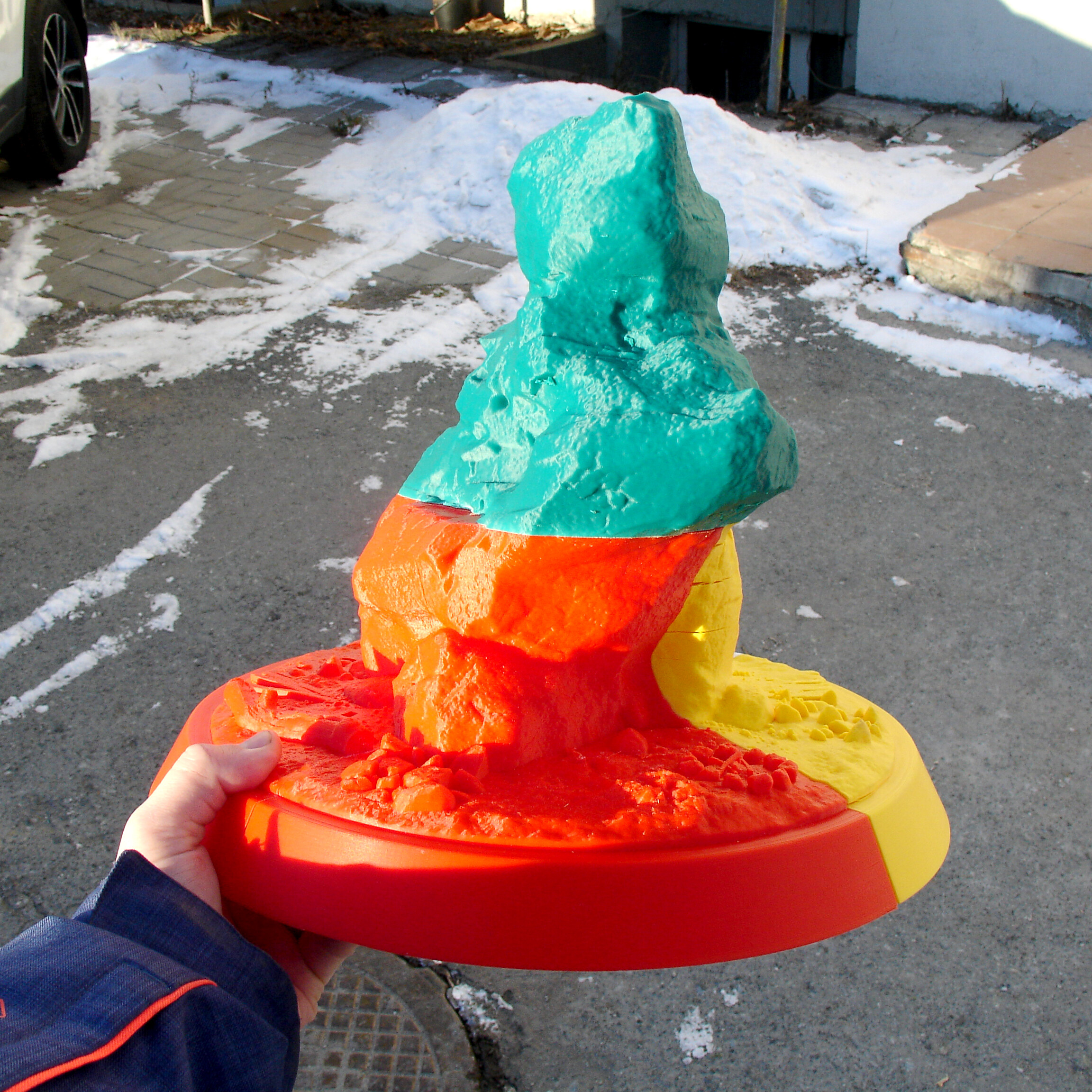 Диаметр основания - 35см. Сама диорама будет примерно 0,5х0,5х0,5 метра. Остальные запчасти в печати.