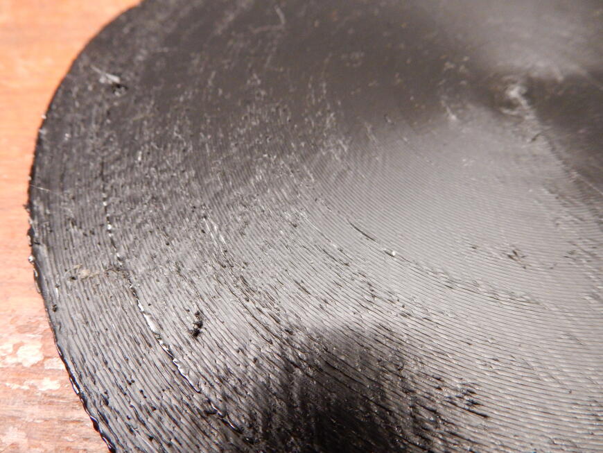 Температурные башни не печатал, но пробовал менять температуру 200-230 (для PETG). Опытным путём установил - чуть меньше шершавости на 205-210 градусах, но именно на этой температуре печатал и потом сделал фото.