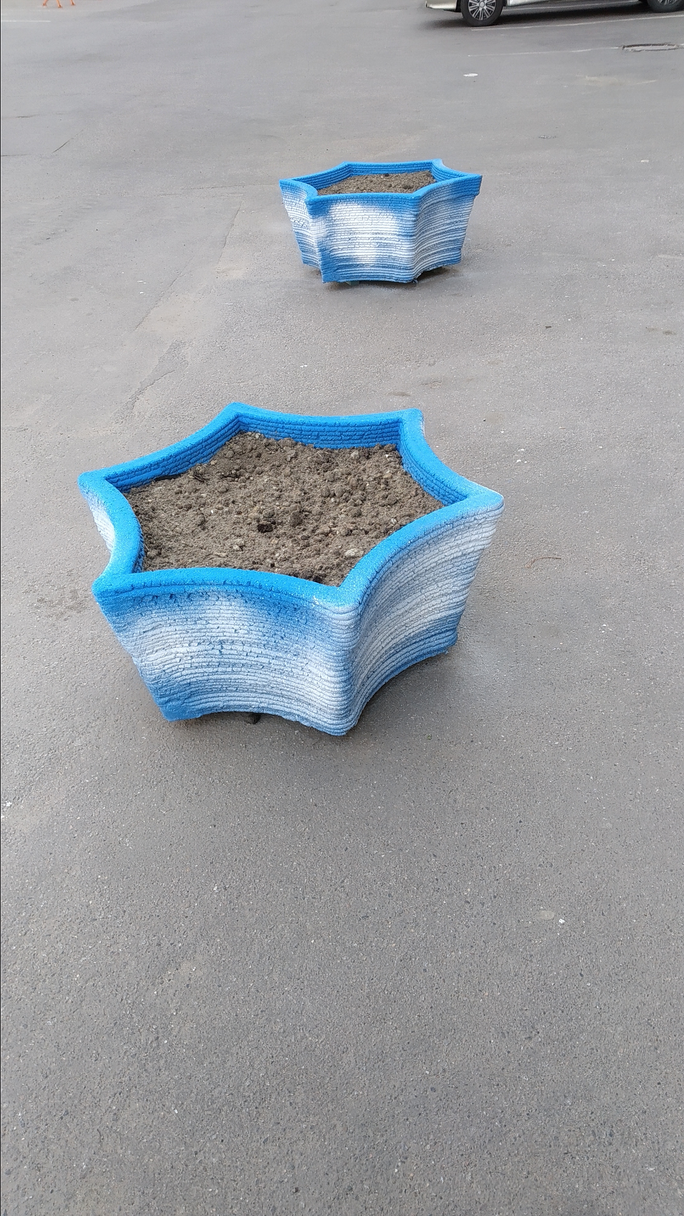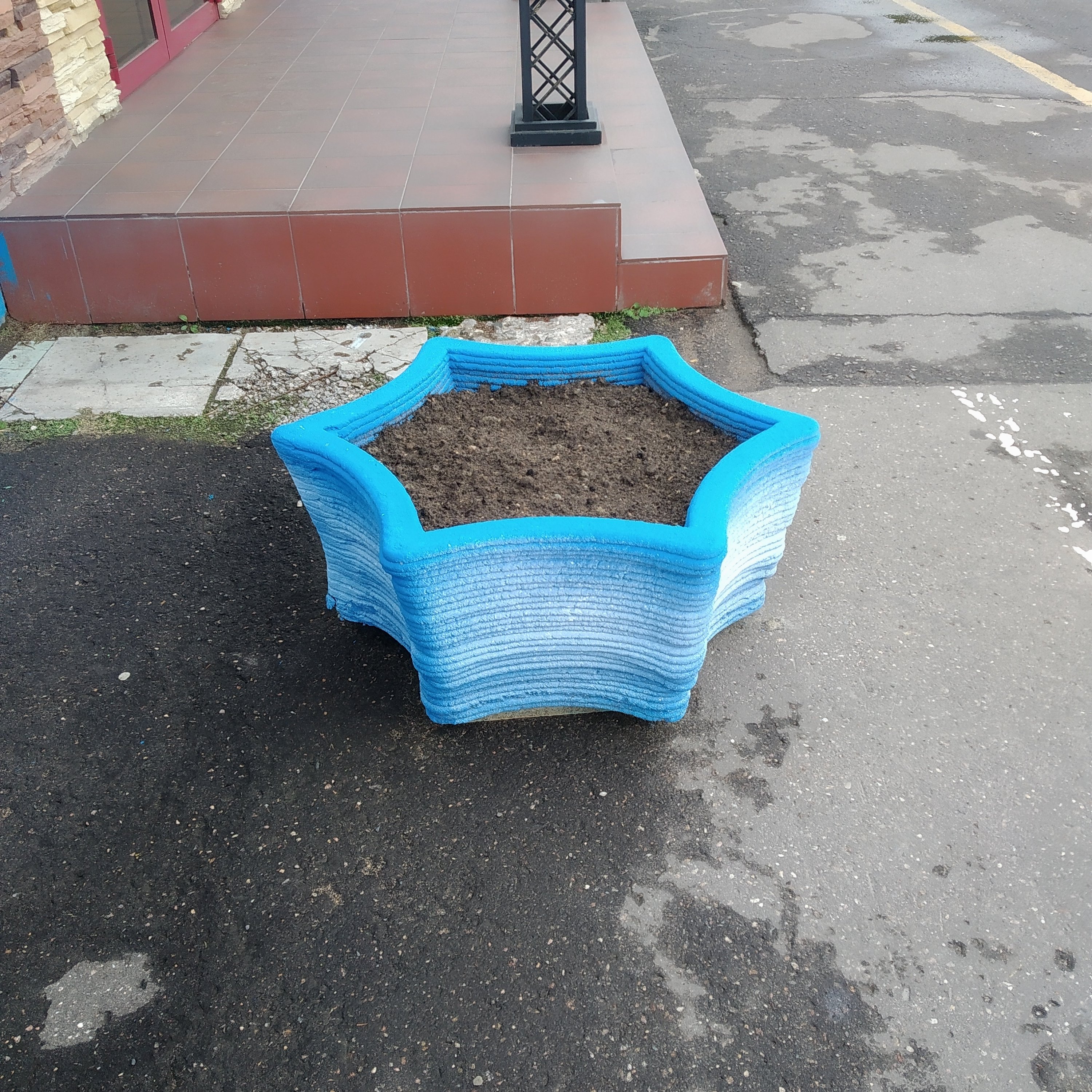 Возле работы недавно поставили печатные клумбы. По крайней мере, смотрятся симпатичнее стандартных бетонных изваяний,что обычно ставят. Параметры печати не знаю.