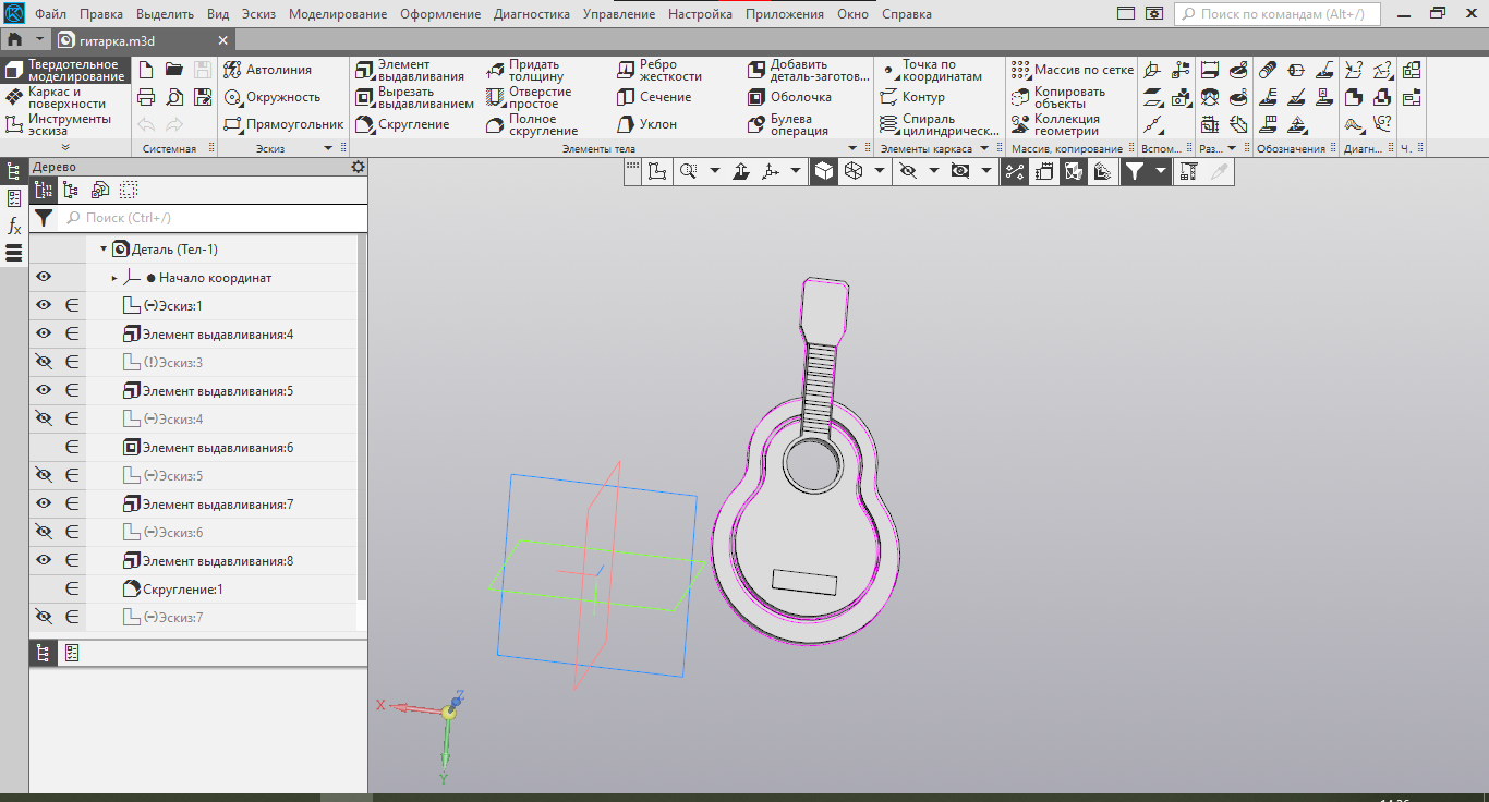 Приближался день рождения отца, и я хотел ему что-то напечатать. Что-то полезное и что бы ему понравилось. Самым сложным был выбор что-же напечатать. Я решил подарить закладку в виде гитары так, как мой отец учитель музыки и любит читать. Так же я хотел порыться в настройках Компаса, чтобы улучшить качество модели при переводе в STL.
