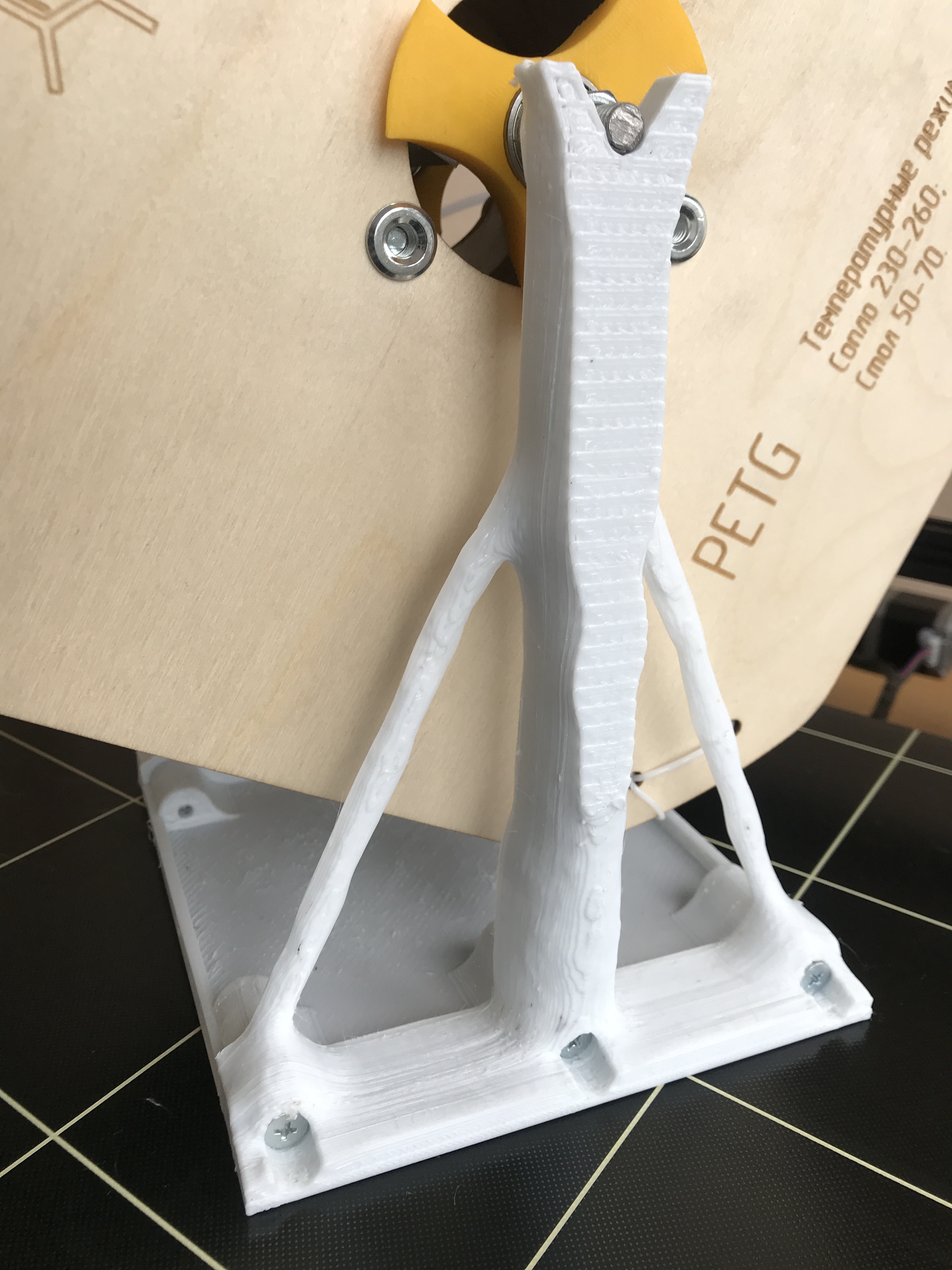 Сделал подставку под 3,5кг катушку от Syntech. Печатал их же PetG 1мм соплом. Под шпильку м8 на подшипниках.
