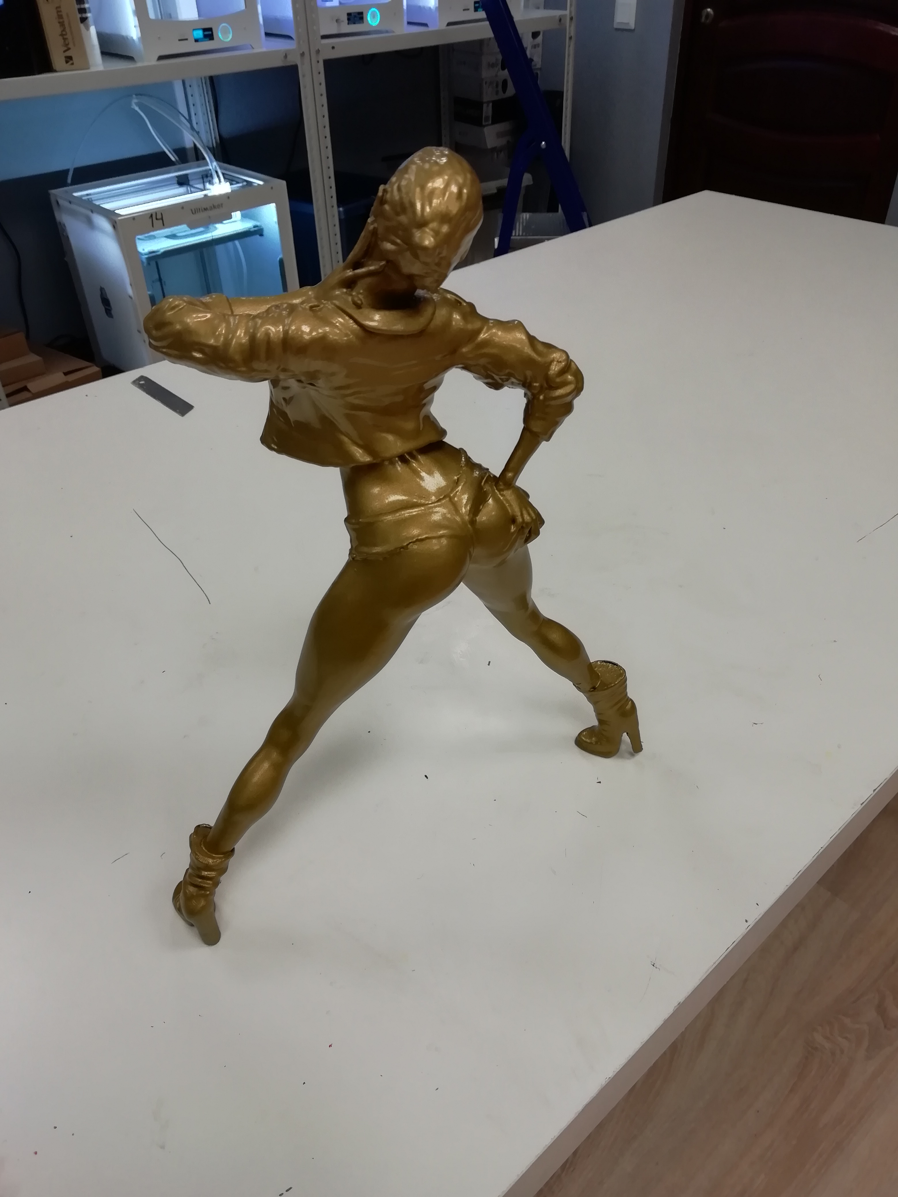 Пластик крепкий, но плохо поддаётся обработке. Первое, что мы делаем убираем поддержки и срезаем все излишки. Второе, заливаем краской-грунтом, даём сутки высохнуть. Этот слой мы шкурим и уберём всё то что появилось после первой покраски. Третье, берём акриловый грунт и покрывает слой шкурим 800, такой процесс повторяем трижды. Четвёртое, красим золотой краской в 2 слоя, сохнет ещё сутки. Пятое роспись кистью и акрилом. Шестое и последнее, покрывает двумя слоями глянцевого лака. Вот и всё.