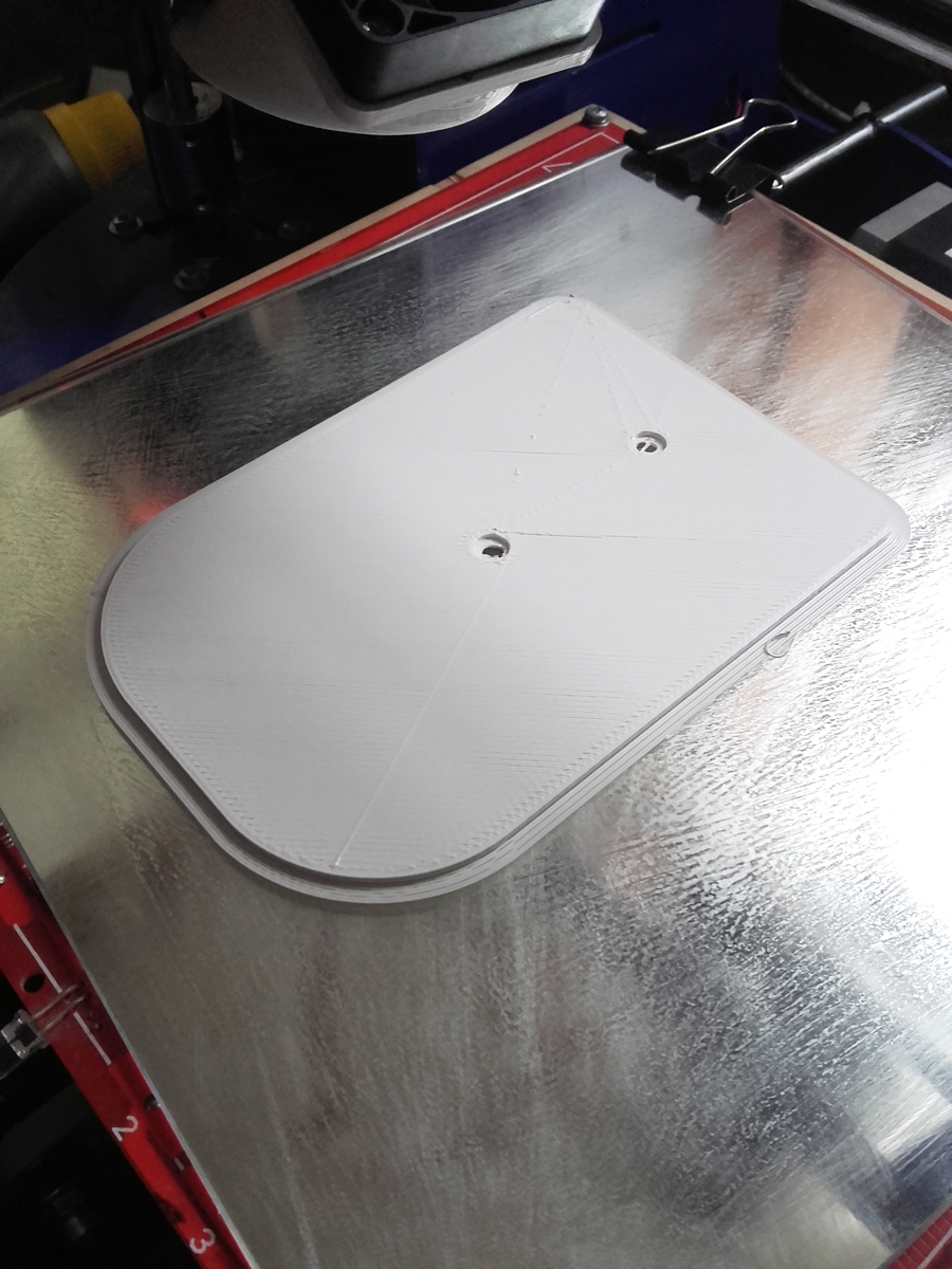 Забыл упомянуть, площадь контакта 120мм*80ммБез косяков есессна не обошлось, печатал без поддержки, понадеявшись на толщину сопла в 0,5мм. В итоге скругления получились не идеал и, конечно, при шаге 0,3мм ребристые.
