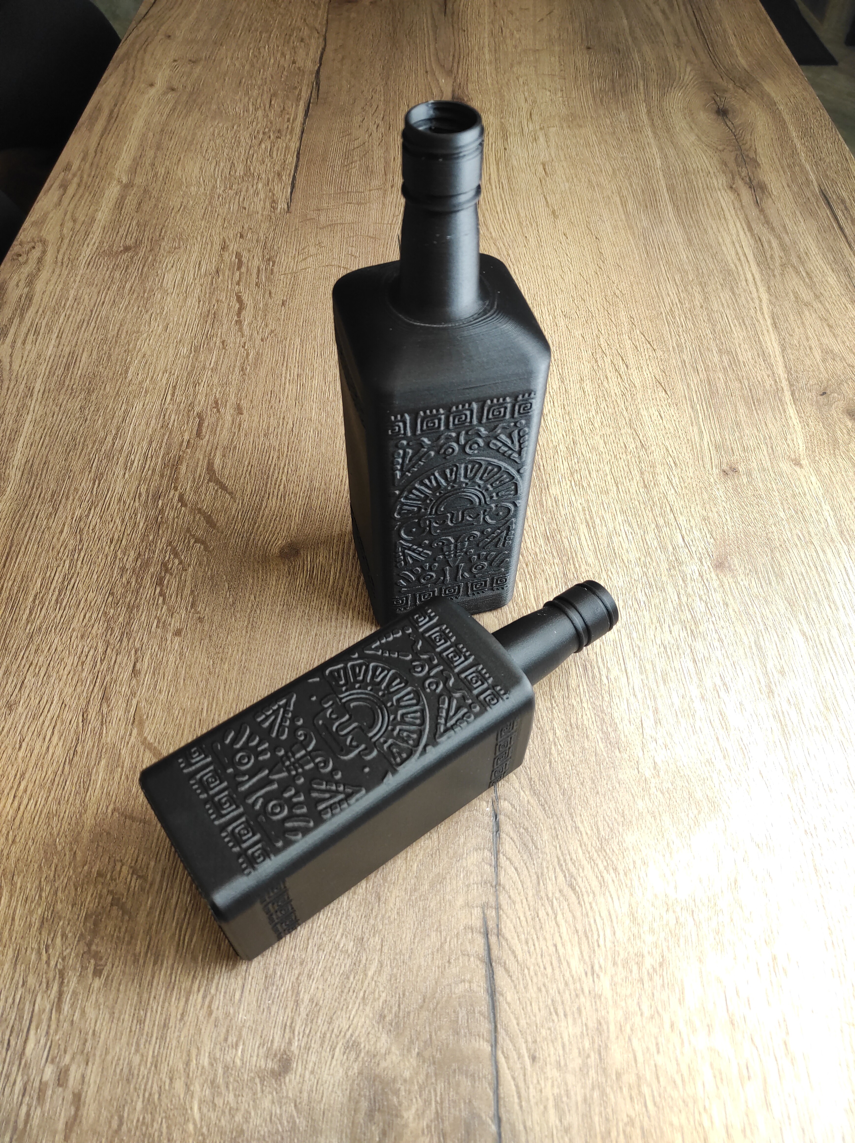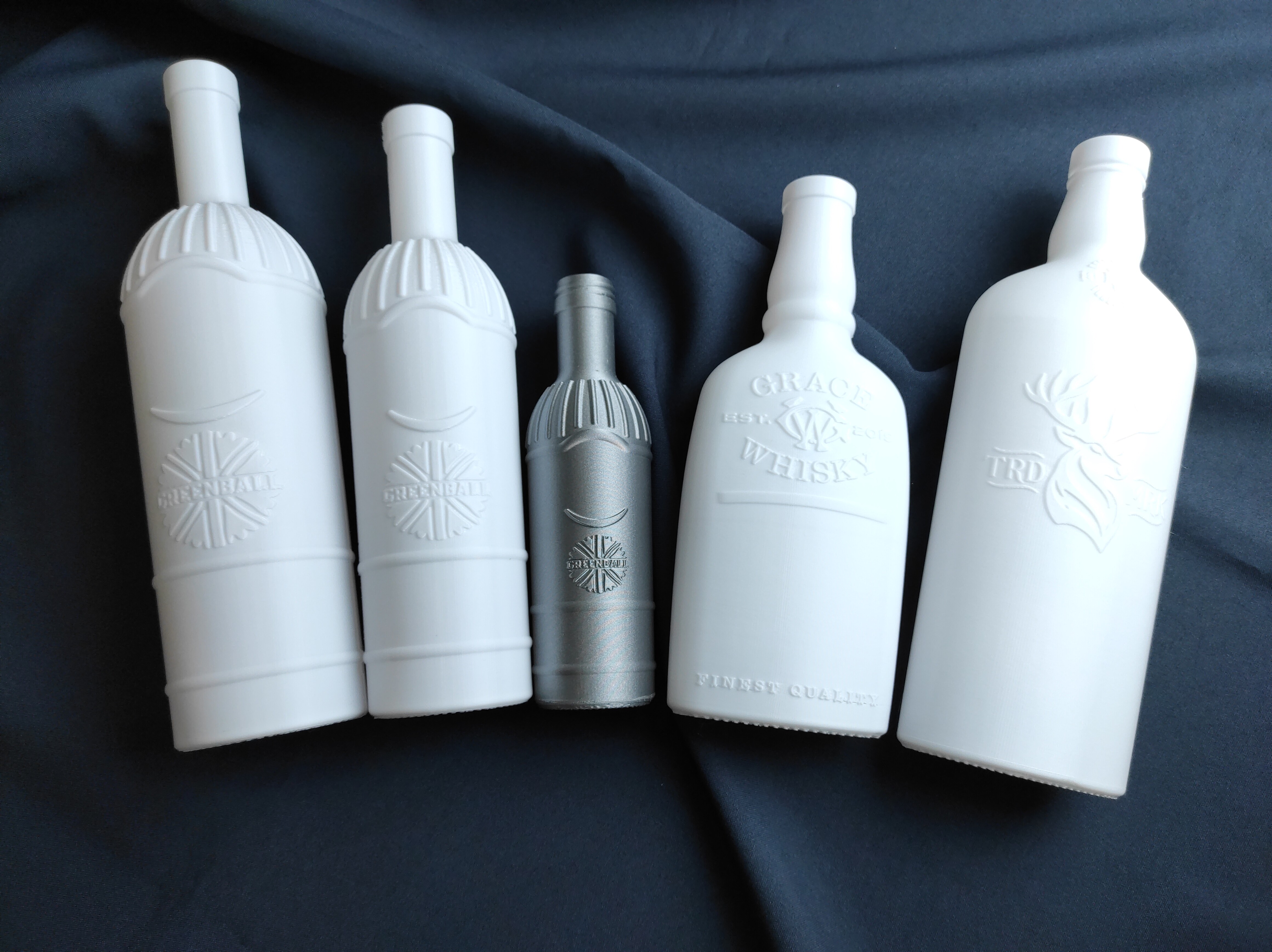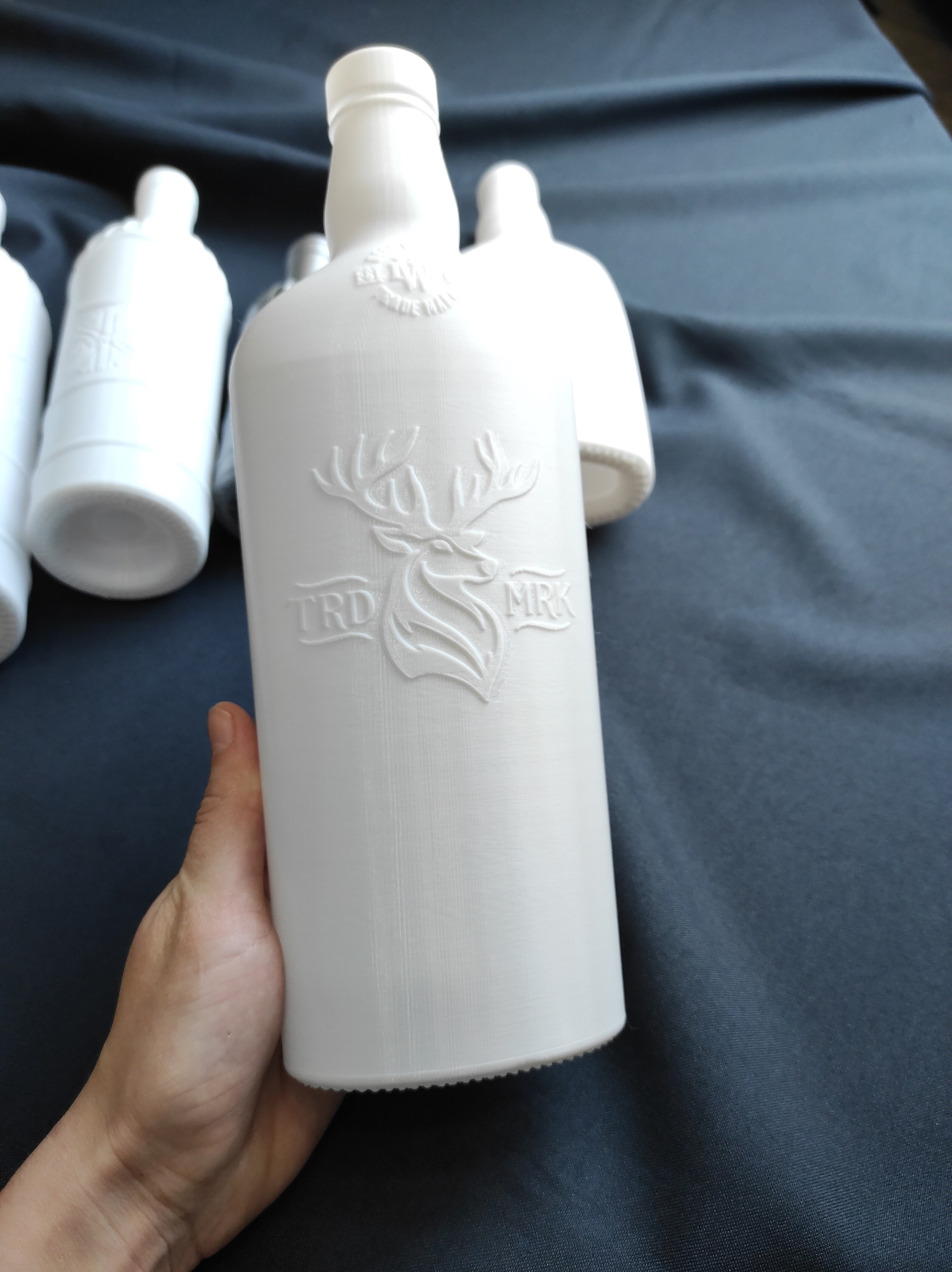 На постоянной основе печатаем прототипы бутылок для нашего постоянного клиента - местной крупной компании, которая, в числе прочих направлений, выходит на рынок новых для себя разновидностей крепкого алкоголя или перерабатывает дизайн уже существующих бутылок. Среди очередных прототипов - бутылки для текилы, джина и ликера.