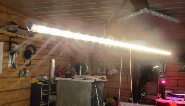 25 см один рассеиватель. Сделал и герметизирующие перемычки-соединителиВ итоге получился двухметровый светильник на 45 ВтРассеиватели приклеил прозрачным клеем-герметиком.
