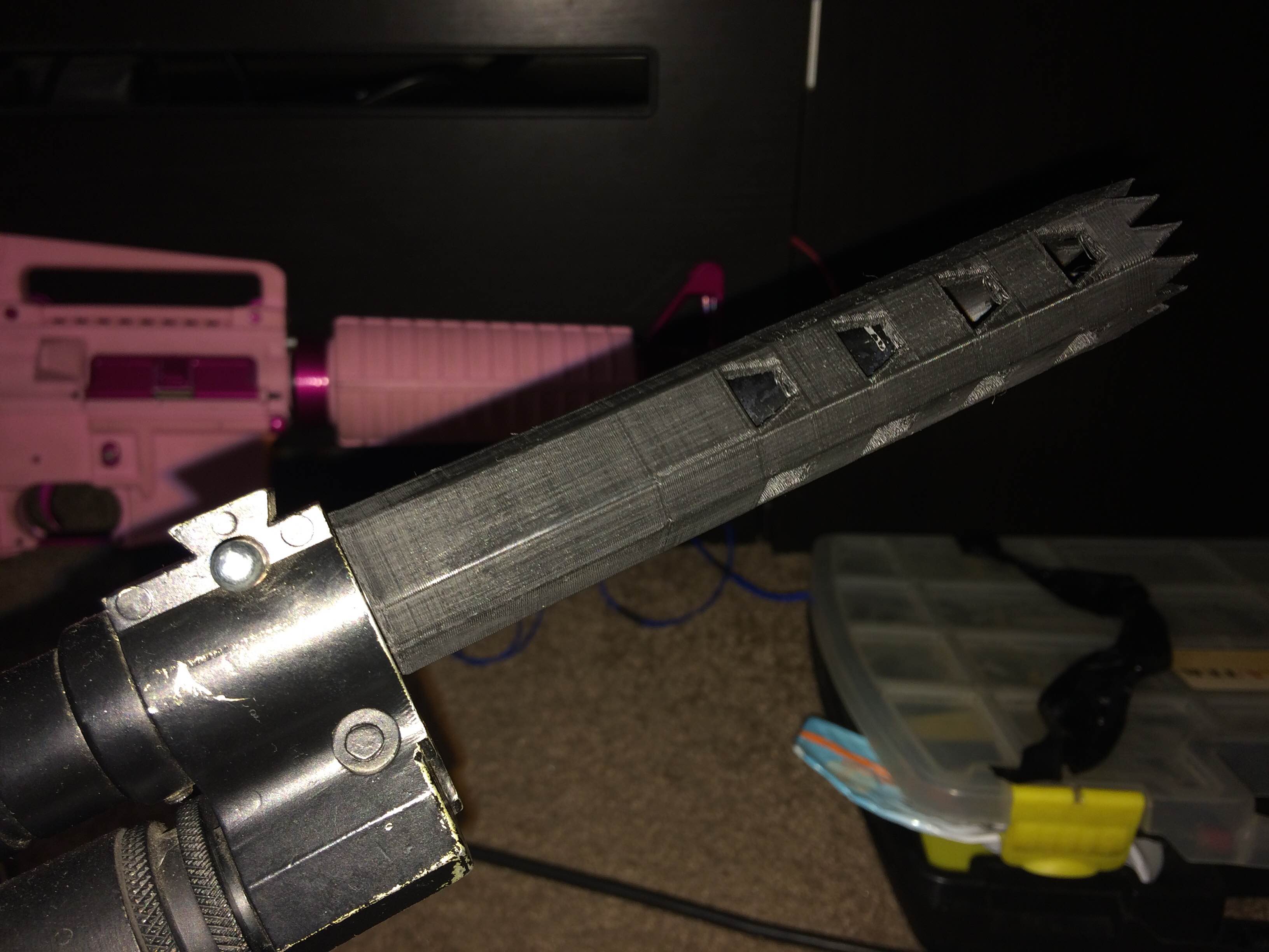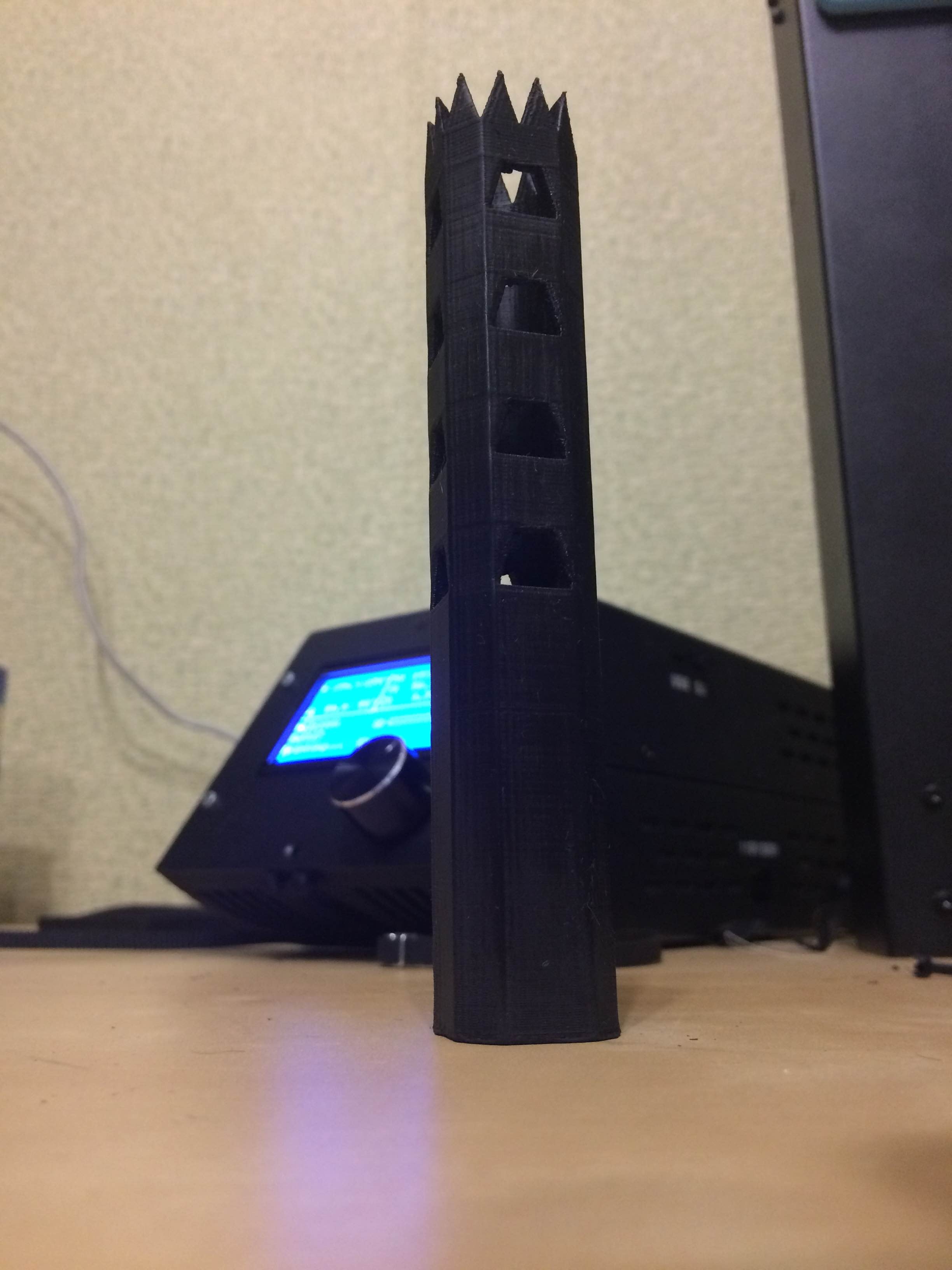 Пластик ABS какой то нонейм черный. Печать при помощи клея на стекле, стол 80, экструдер 230. Высота слоя 0.15