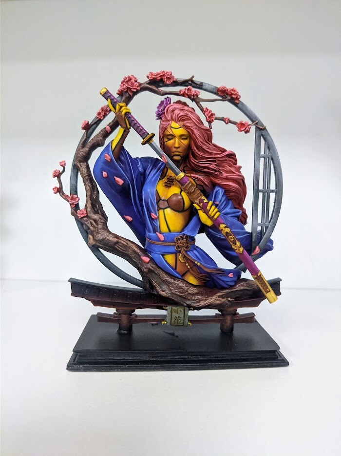 С катаной.