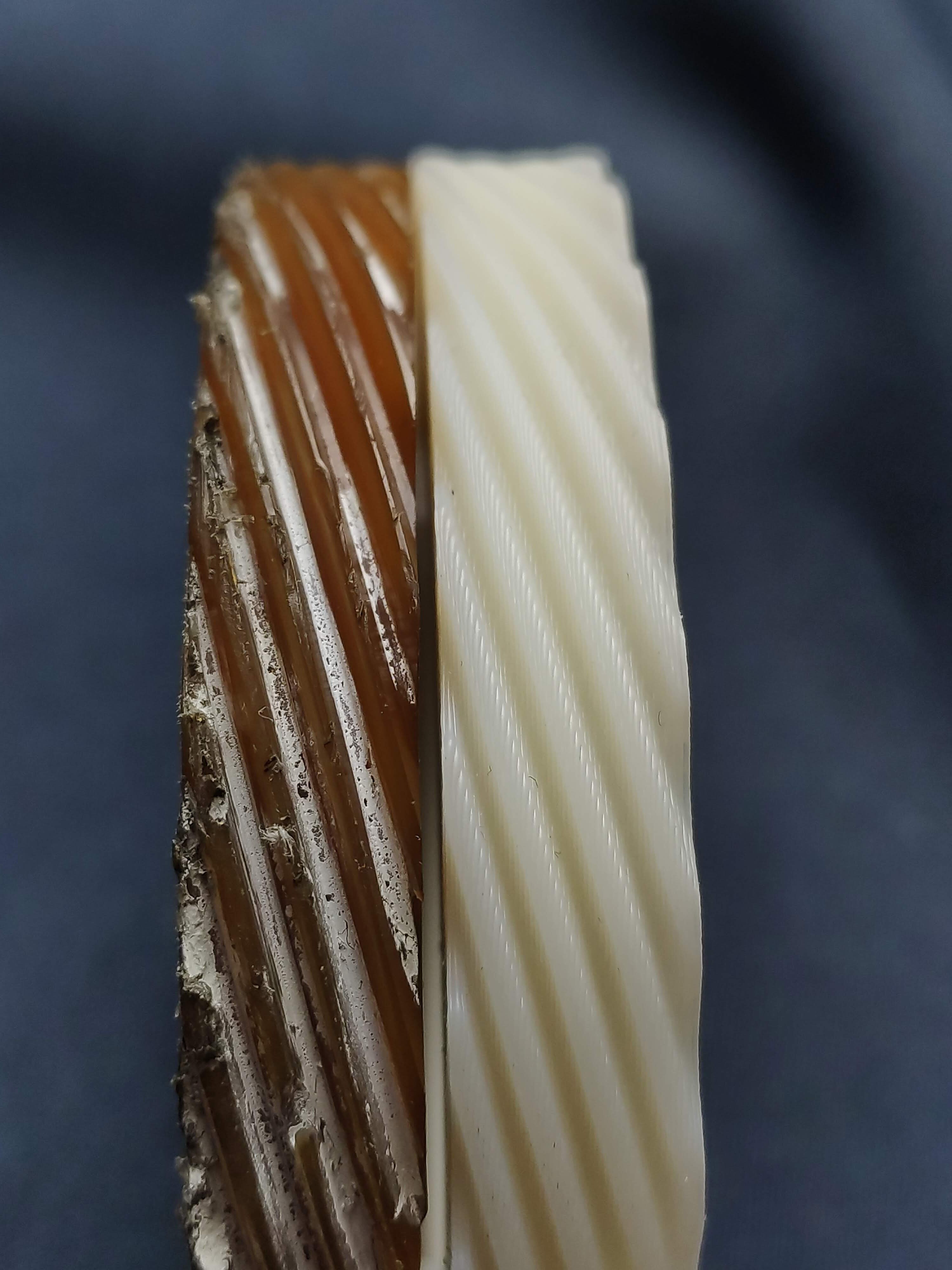 Шестерни датчика скорости для автоматической коробки переключения передач. Смоделировали по образцу, напечатали из ABS PA. Получилось красиво!