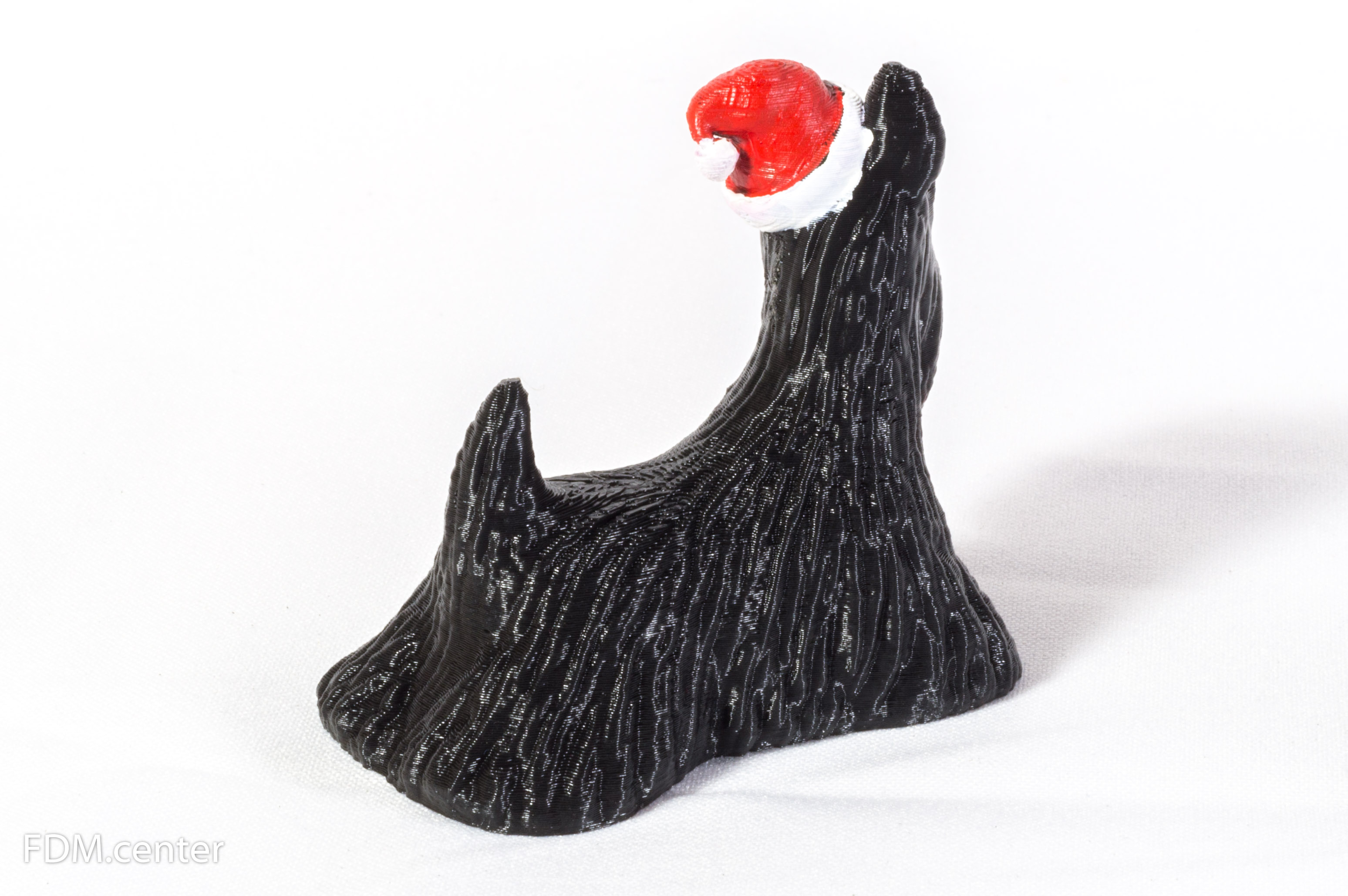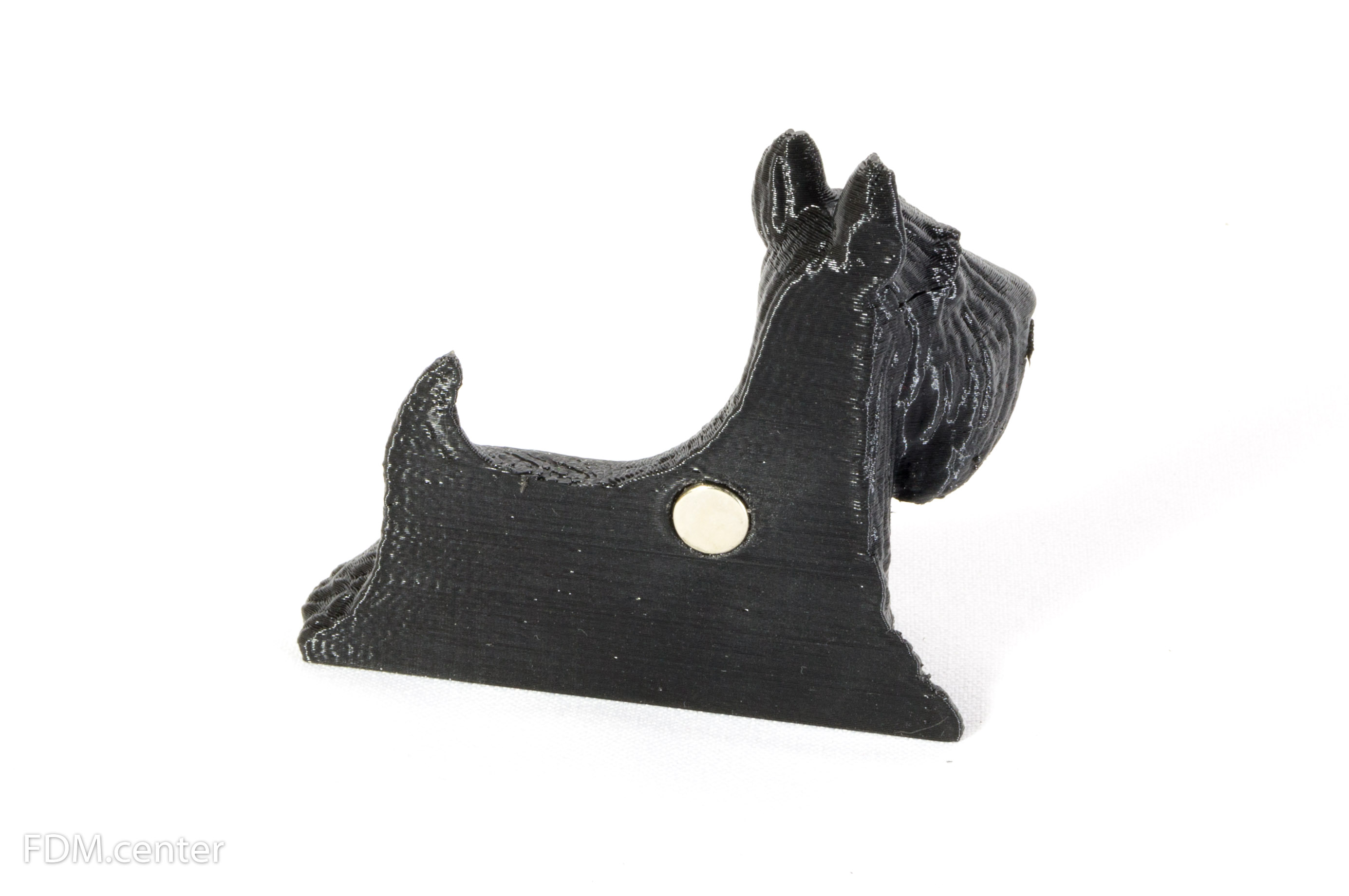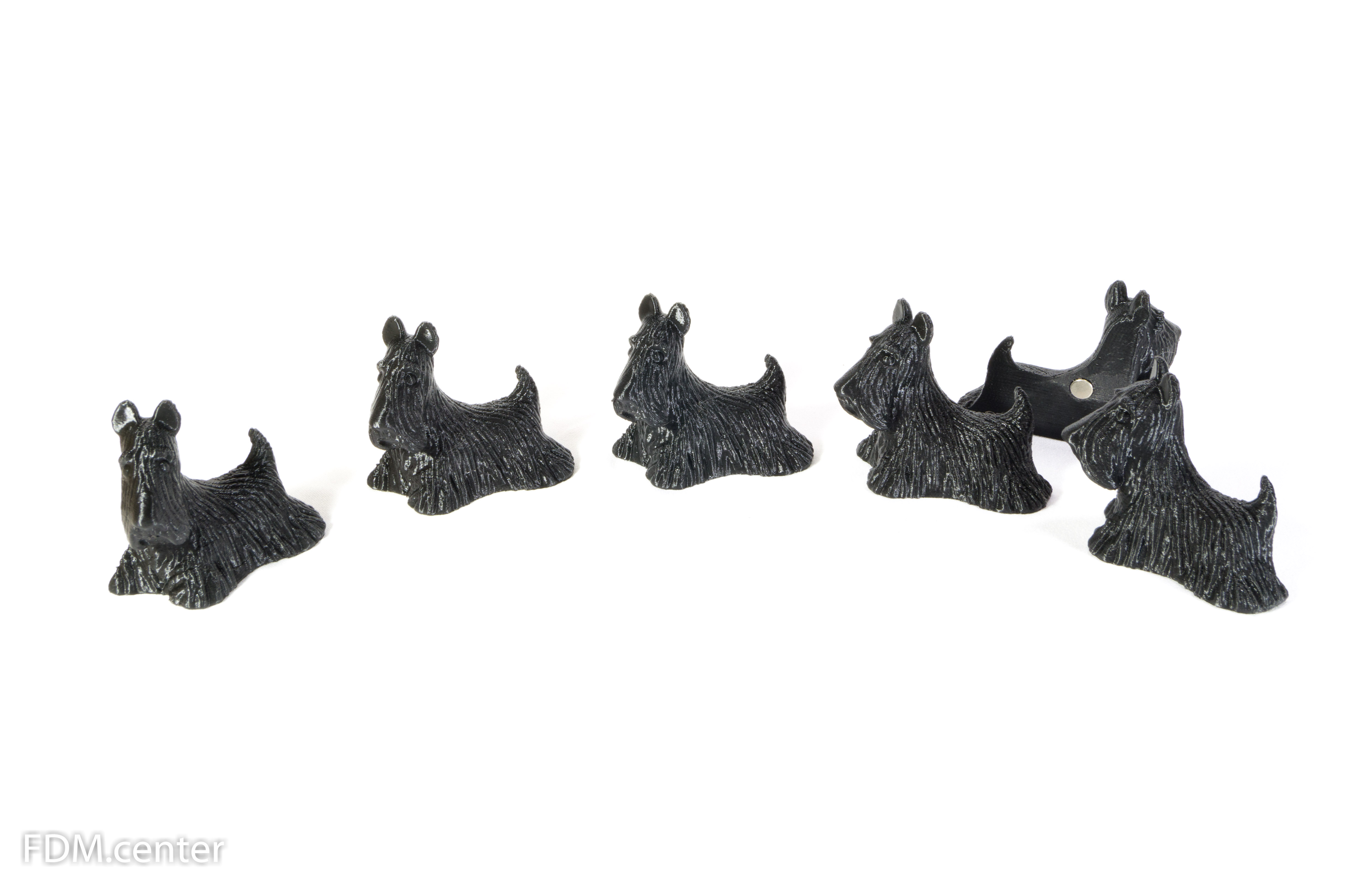 Сначала заказали фигурку скотч терьера, отсканировал, распечатал.