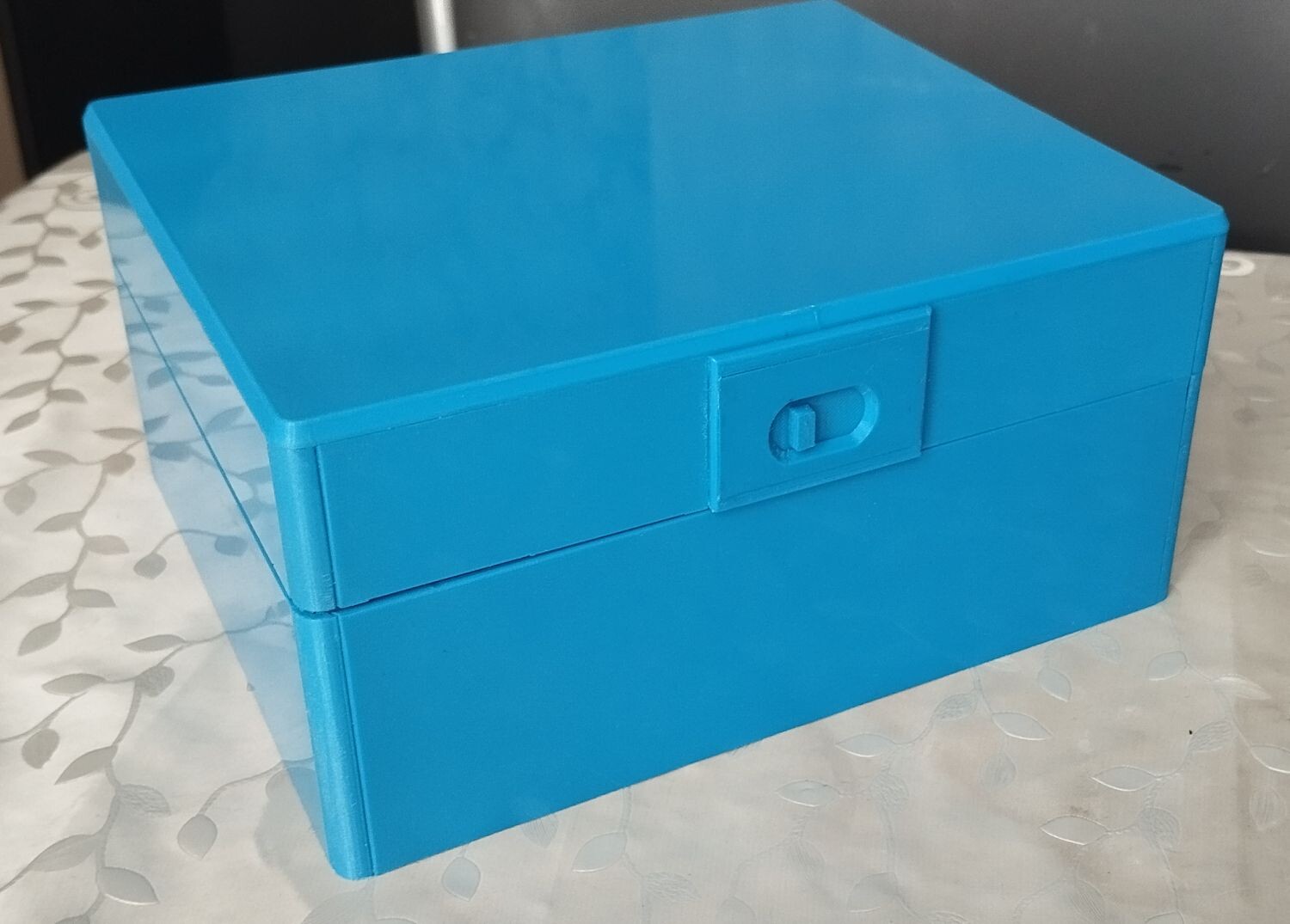 Крышка представляет собой все то же корыто, но только меньшей высоты. При ее изготовлении имеются все те же нюансы, что и описанные выше. В передней стенке крышки расположен замок. Его толщину мне удалось сократить до 6 мм, что позволяет ему отлично выглядеть и работать.