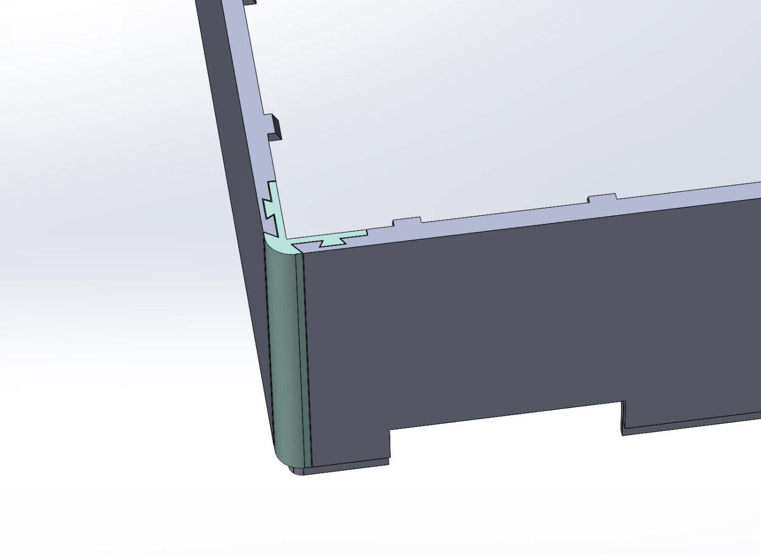 Здесь показаны 2 стенки ящика (серые) соединенные с помощью вставного угла (салатовый).
