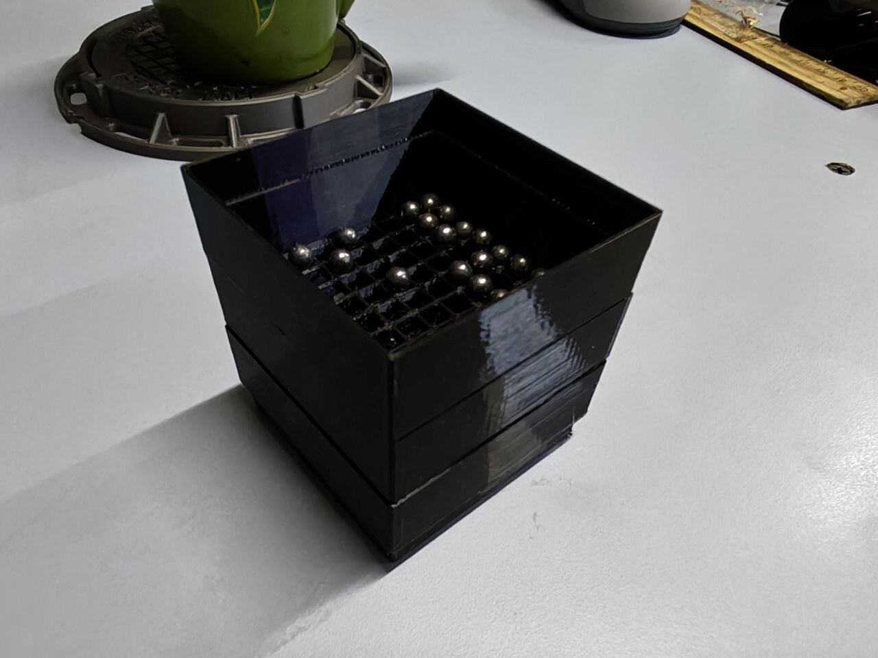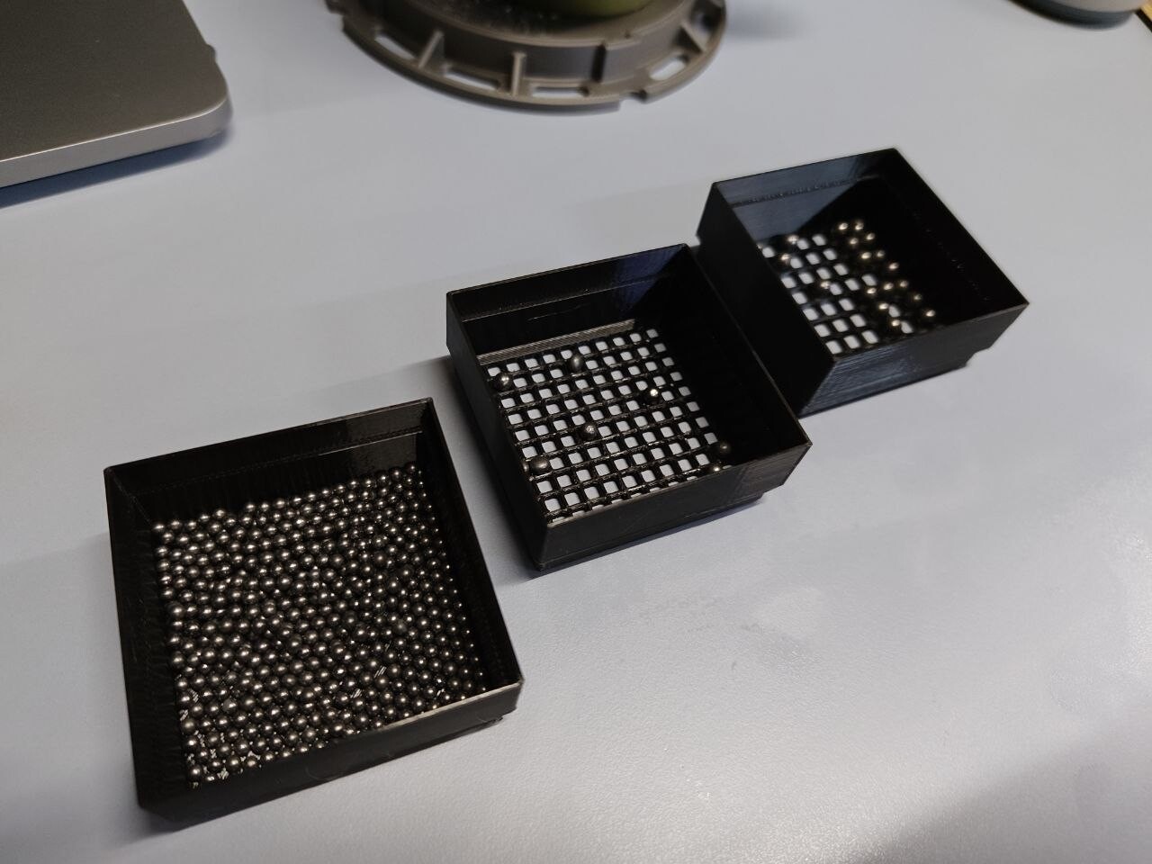 Понадобилось отсортировать пару килограммов перемешанной дроби, всего было три размера, мелкая, 3мм+ И 4мм+. смоделировал распечатал, Собирается в стопку, засыпается, немного трясем и происходит разделение.