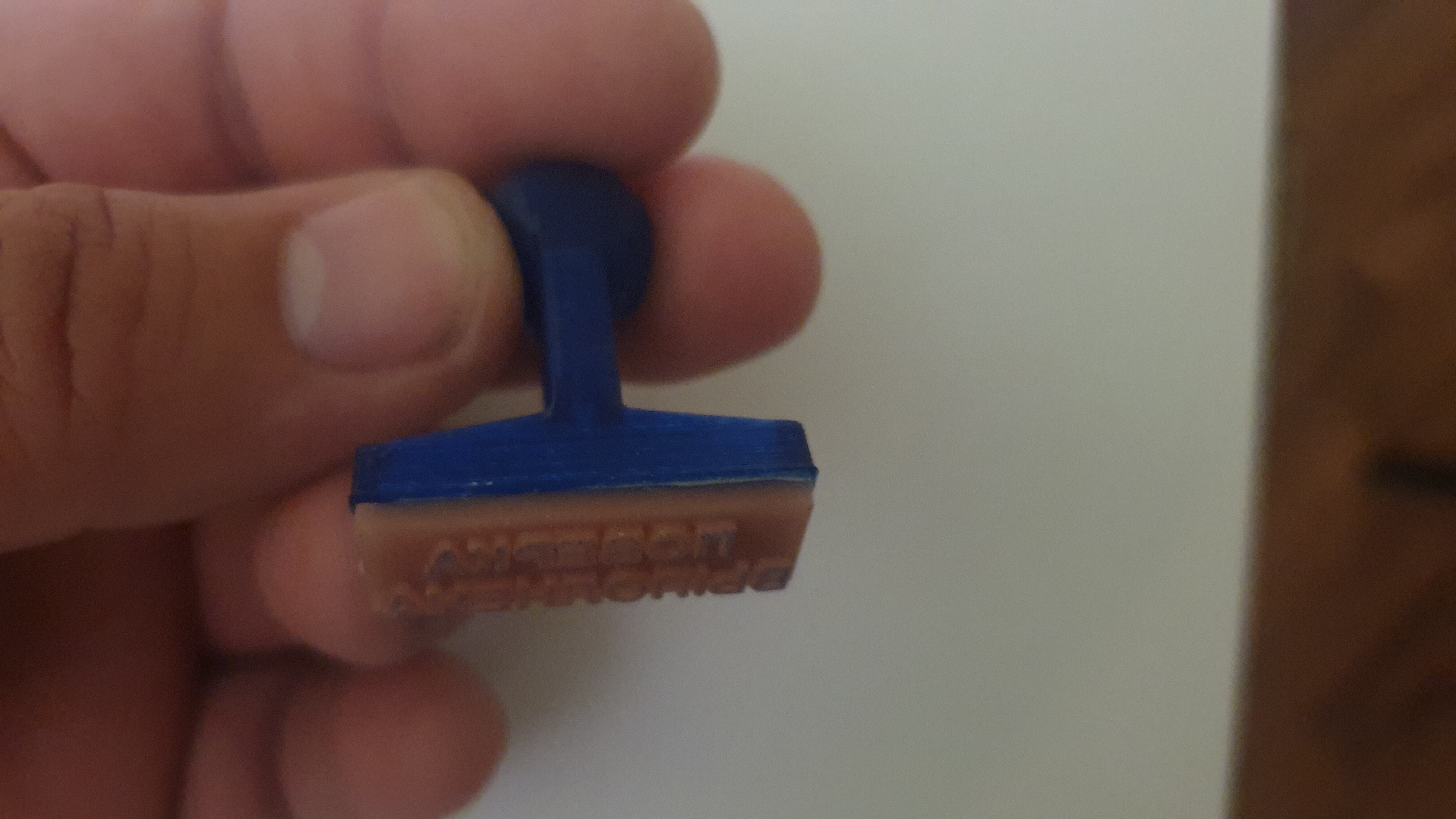 Вот тут и помогла 3D печать, за 15 минут в солиде сварганил штамп с надписью, естественно в зеркальном отображении, и основание для штампа.