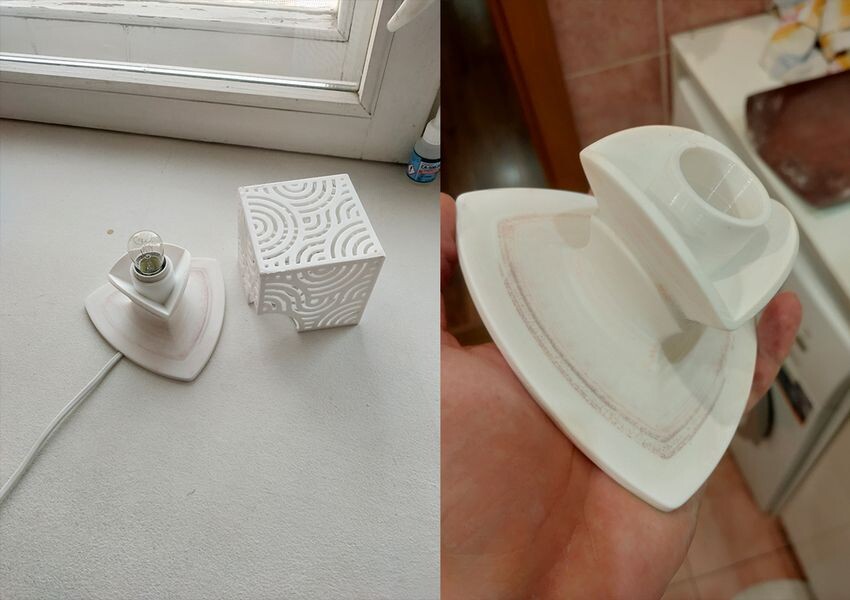 После всех нервов, страданий и ошибок которые были при печати (и отлипание и косяки выгонки из 3д) был напечатан мой светильник.