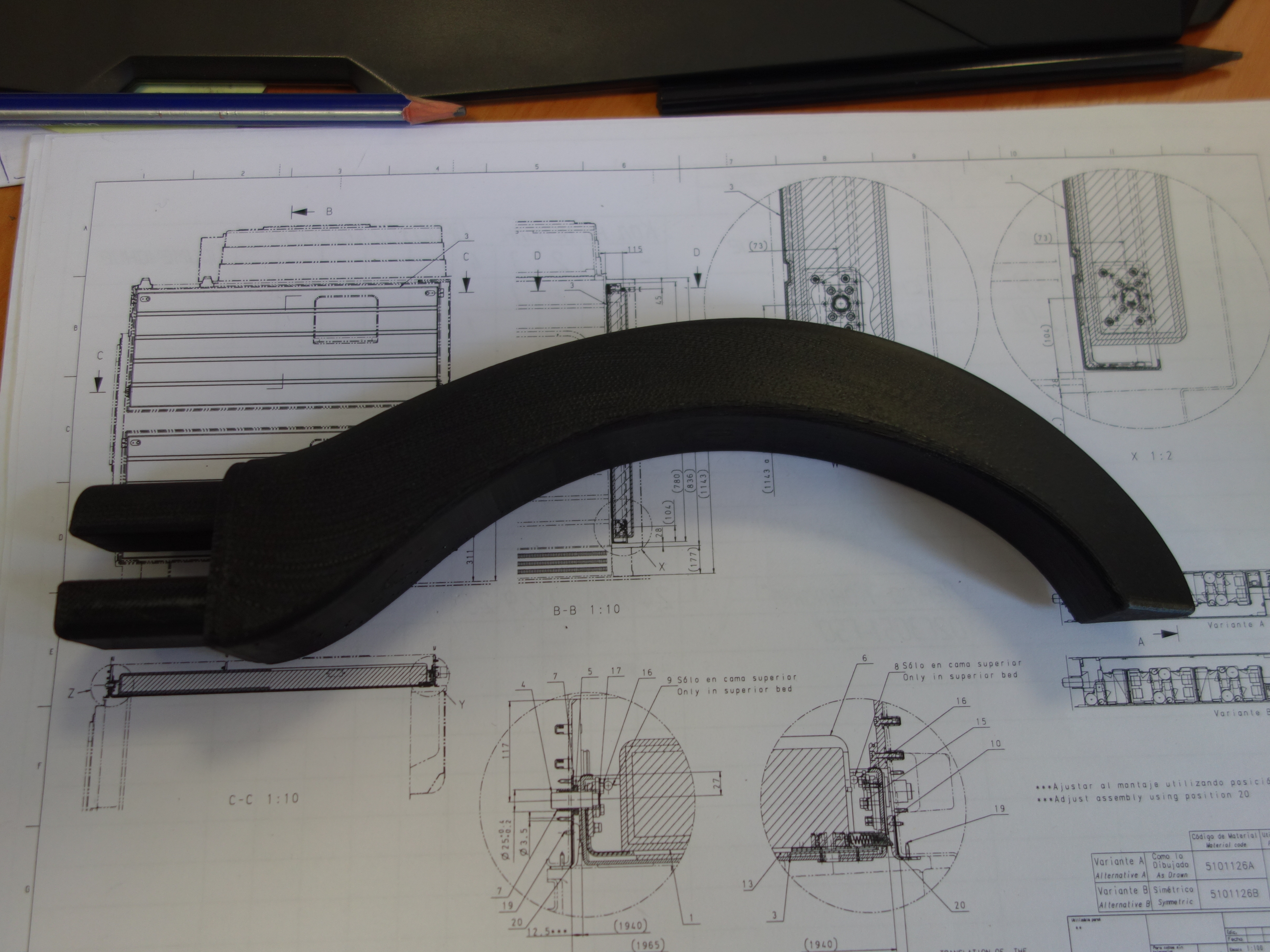 Печать трехмерных объектов на принтере (методом FDM) довольно востребована у нас в отделе. Полученные модели часто позволяют в короткие сроки создать прототип для презентации, а особенно важно для оценки его форм. В данном случаи речь идет о ручке-поручне. Была задача разработать ручку, которая лежала по руке, при этом не создавала отталкивающего эффекта (существующая ручка обладала довольно острыми линиями, серая на фото), параллельно необходимо увеличить прочностные характеристики. Результат данного процесса явились два изделия - они представлены на фото. Печать заняла по 5 часов на одну ручку. Настройки печати были: Слой - 0,3 мм, Сопло - 0,4 мм. Пластик ABS. Стоит отметить что тогда не обладал чудо средство в виде 3D лака (тот что жидкий), пользовался ABS-juice, поэтому можно наблюдать неровную поверхность. Одна из ручек подвергалась дополнительно пост обработке в виде наждачной шкурки 250ед.