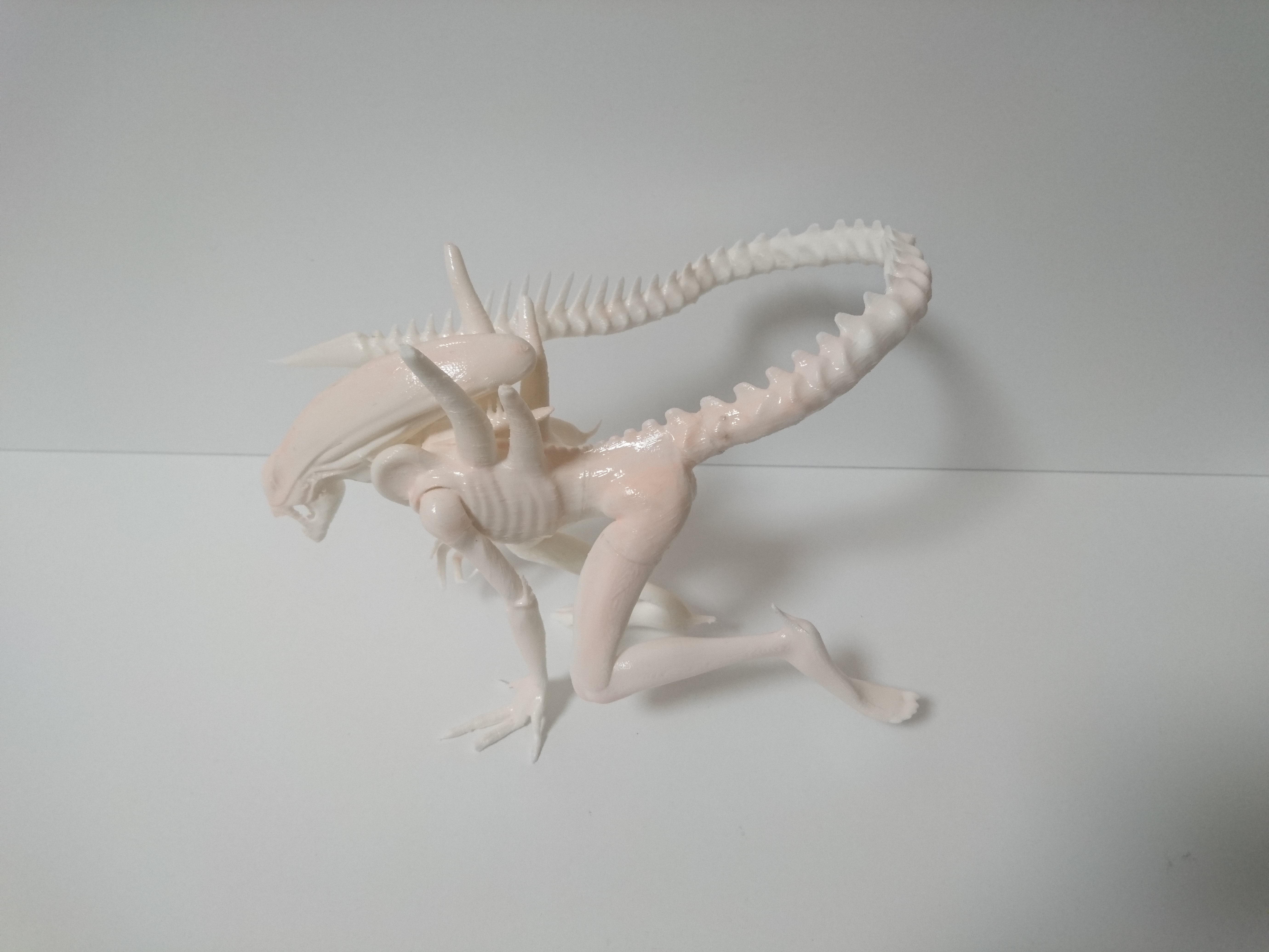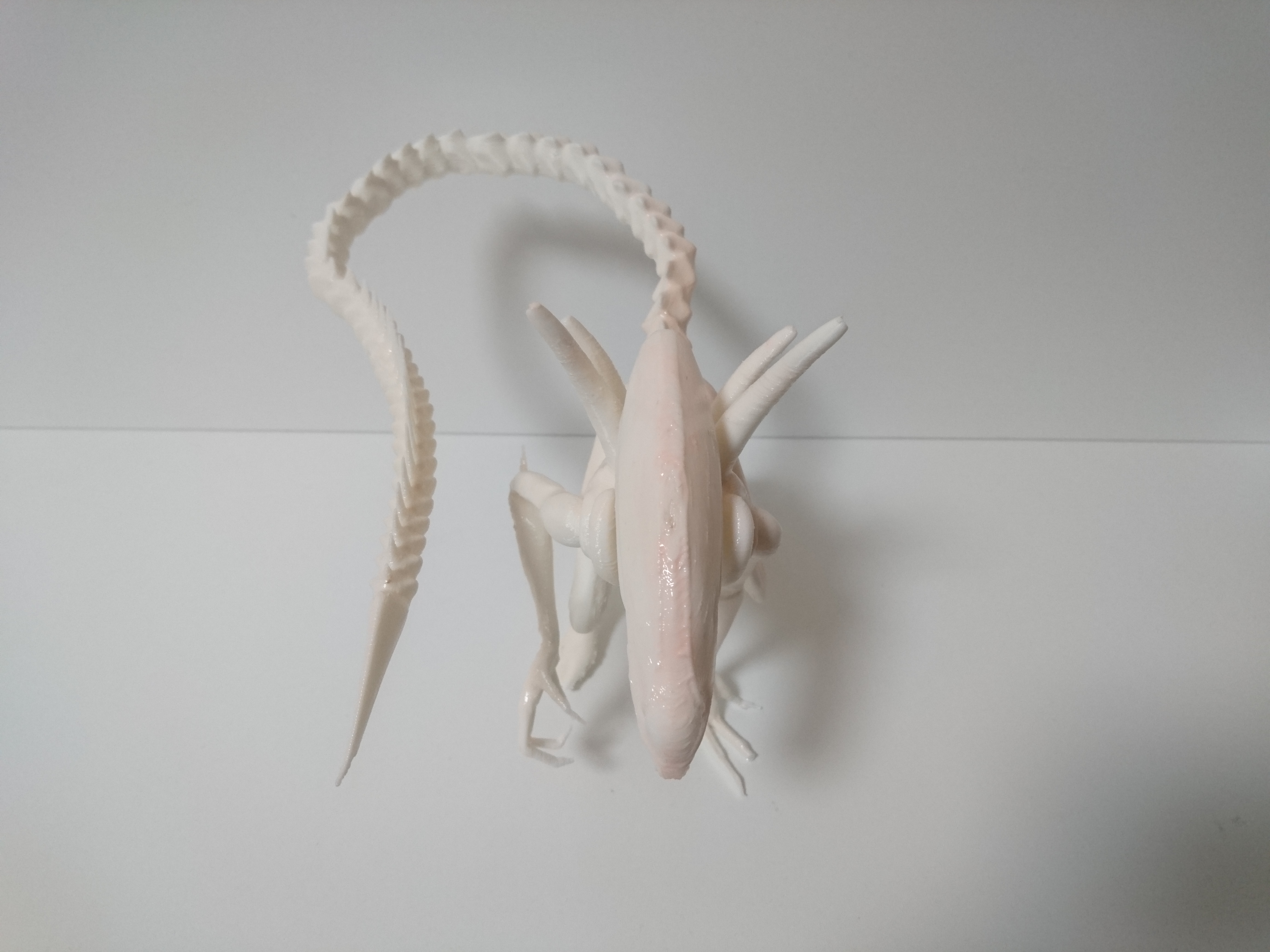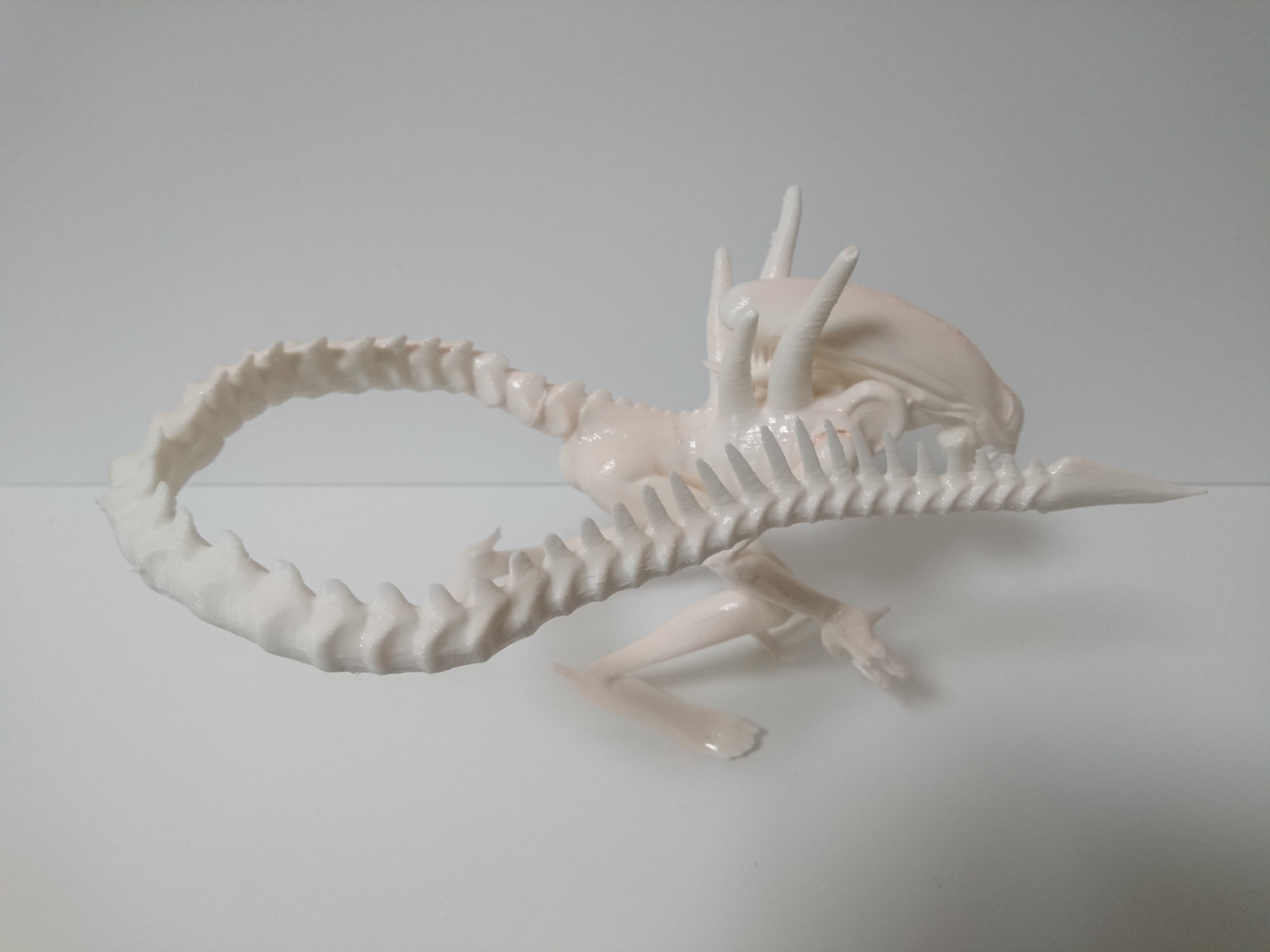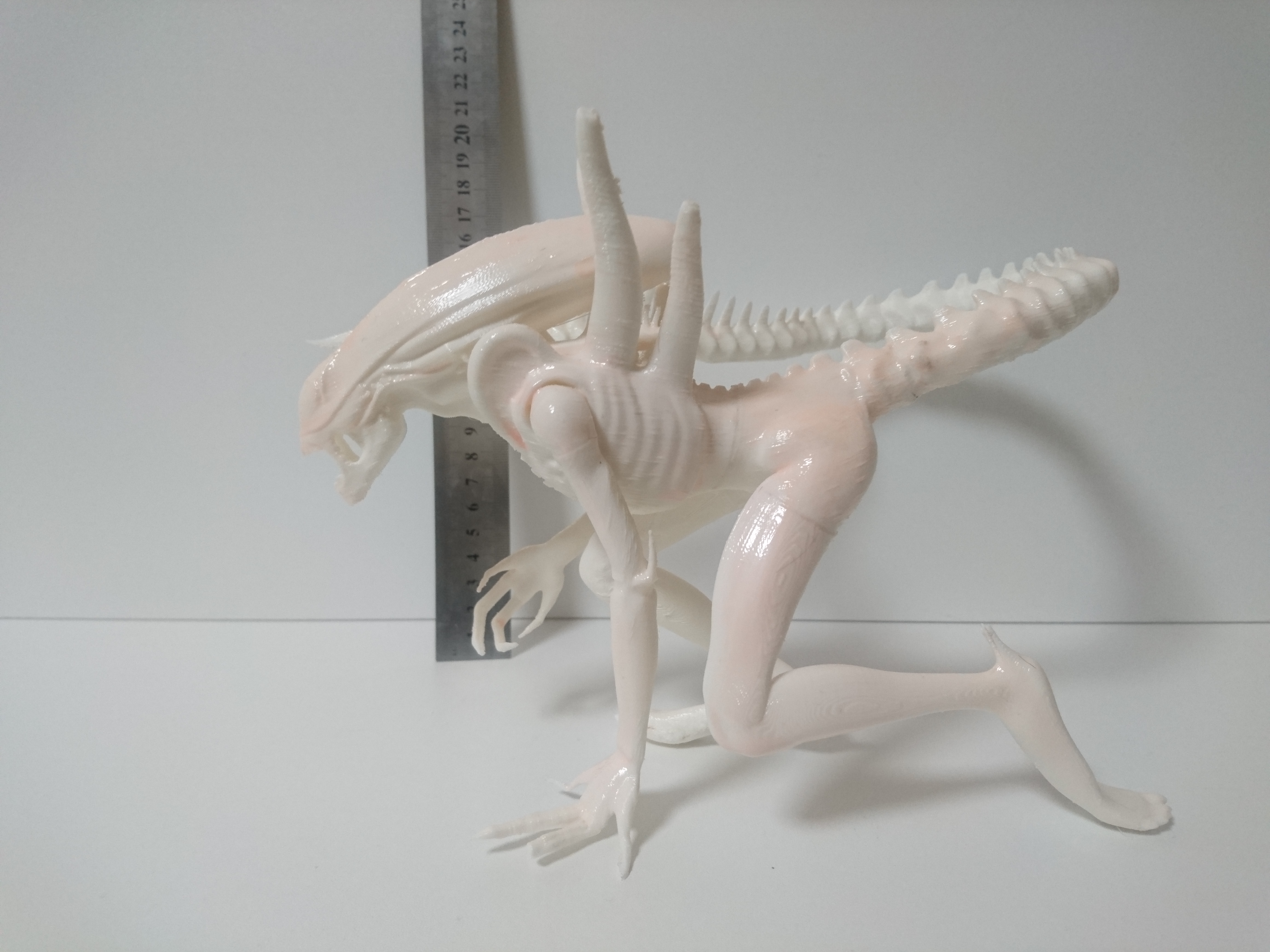 Всё как обычно. Печаталось по частям. АБС FD-Plast. Anet A8. Наконец-то сменил директ на боуден. Тряски прекратились. Стало тише и меньше вибраций. Модельку склеил сразу по окончании печати всех деталей, а зря. Чужой получился не малых размеров! Не поместился даже в ведро 12 литровое, так что ацетоновую баню сделать не смог. Но Фигурка под заказ и заказчик попросил не красить, самому хочется ему это сделать. Ну дело хозяйское... Частично розовый-пытался кистью ацетон нанести, не помогло, а кисть слегка в краске была. Ну да ладно.
