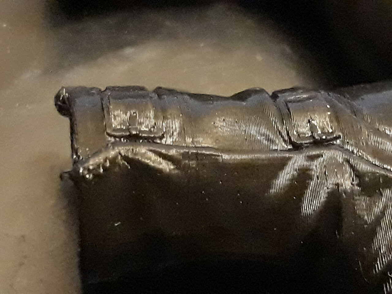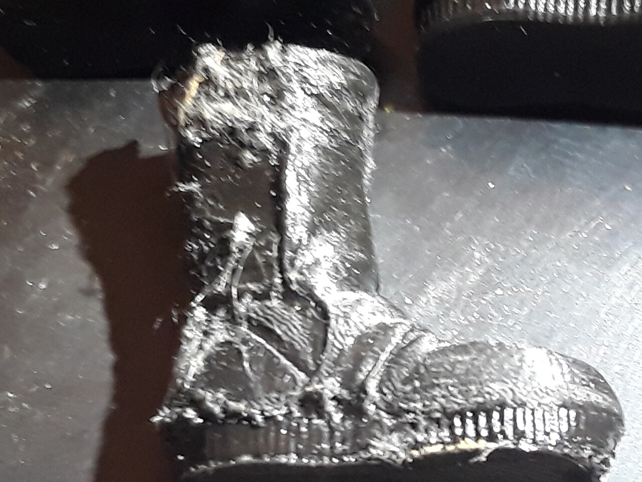При высоте слоя 0.025мм., сильный перелив, пластик не растекается и тянутся нитки, периметры вылезают. Слишком мало верхних слоёв, от того и дырки проплавило, и температура меньше нужна.