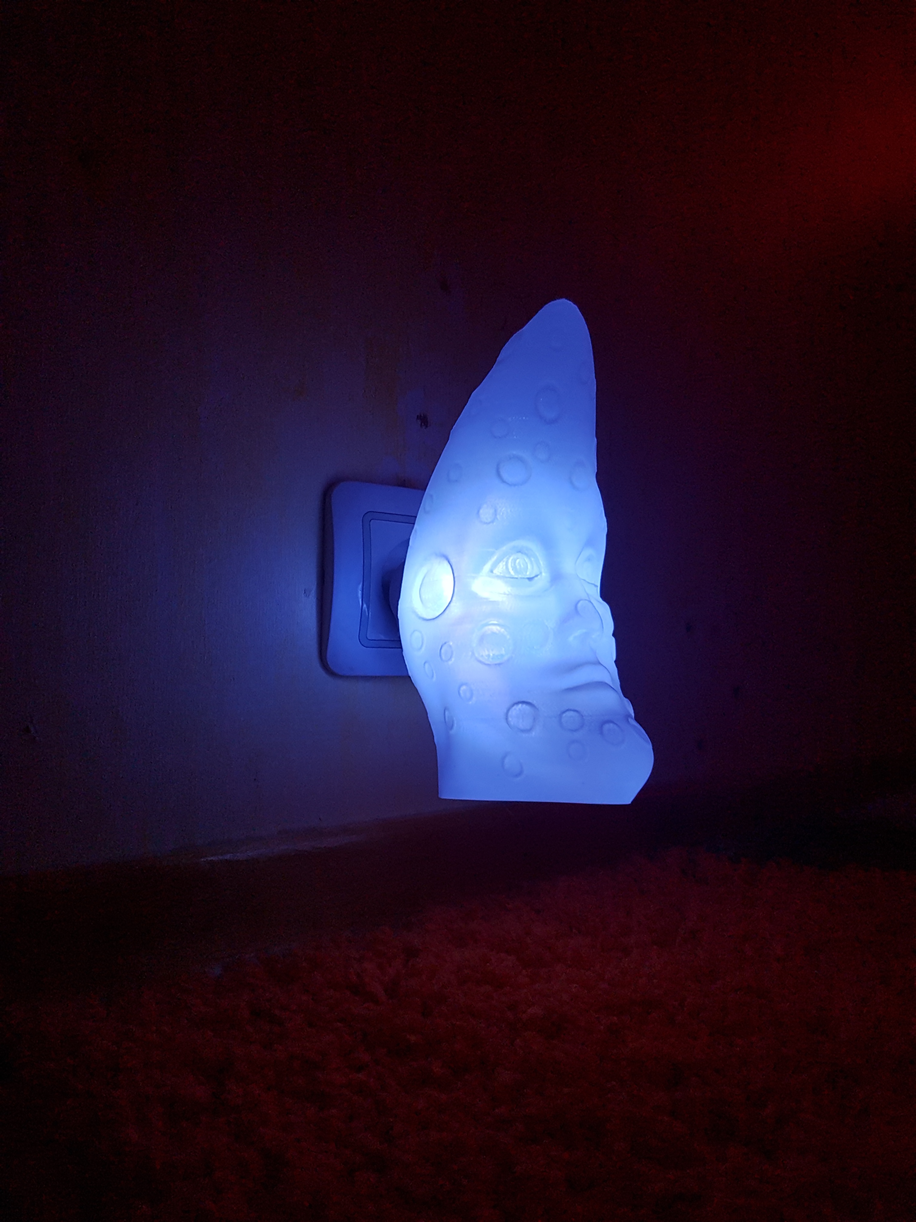 Затем паяльником прожёг отверстие, надел на светильник и приклеил термоклеем.