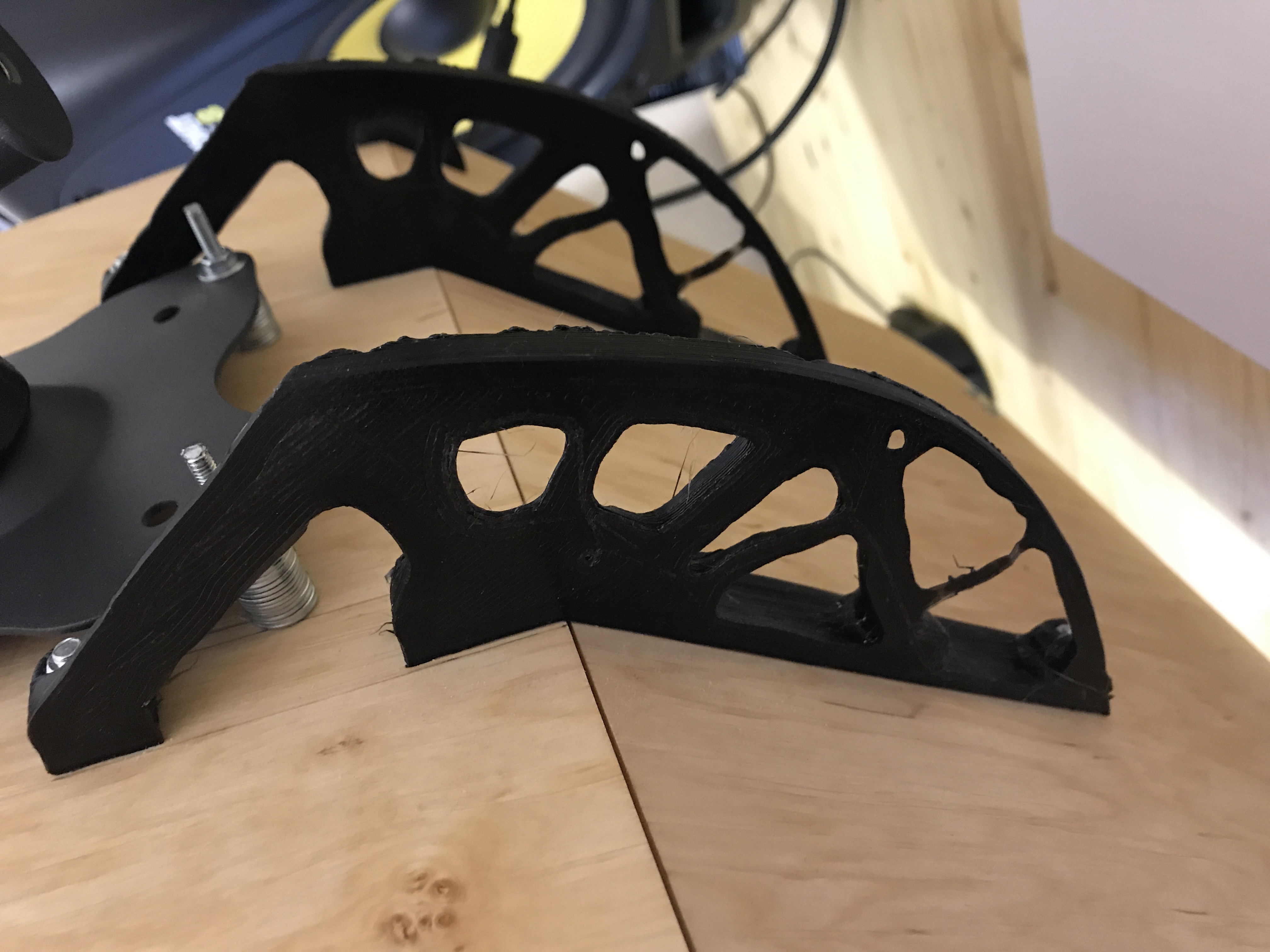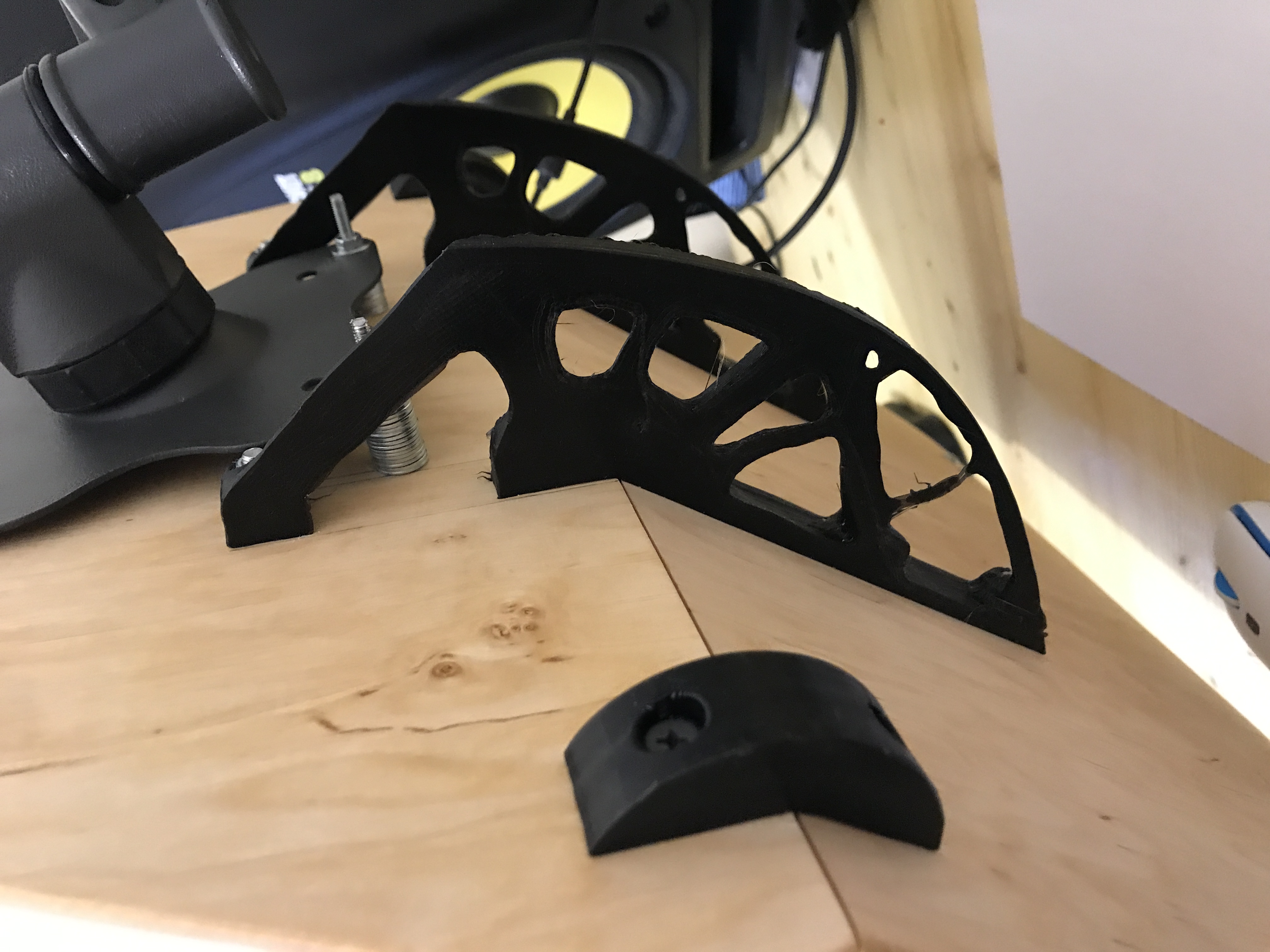 Сделал стенд для ноутбука под Vesa крепление к столу. Генеративный дизайн для большого крепления. Маленькое сделал, т.к. чуть повело фанеру под саморезы.