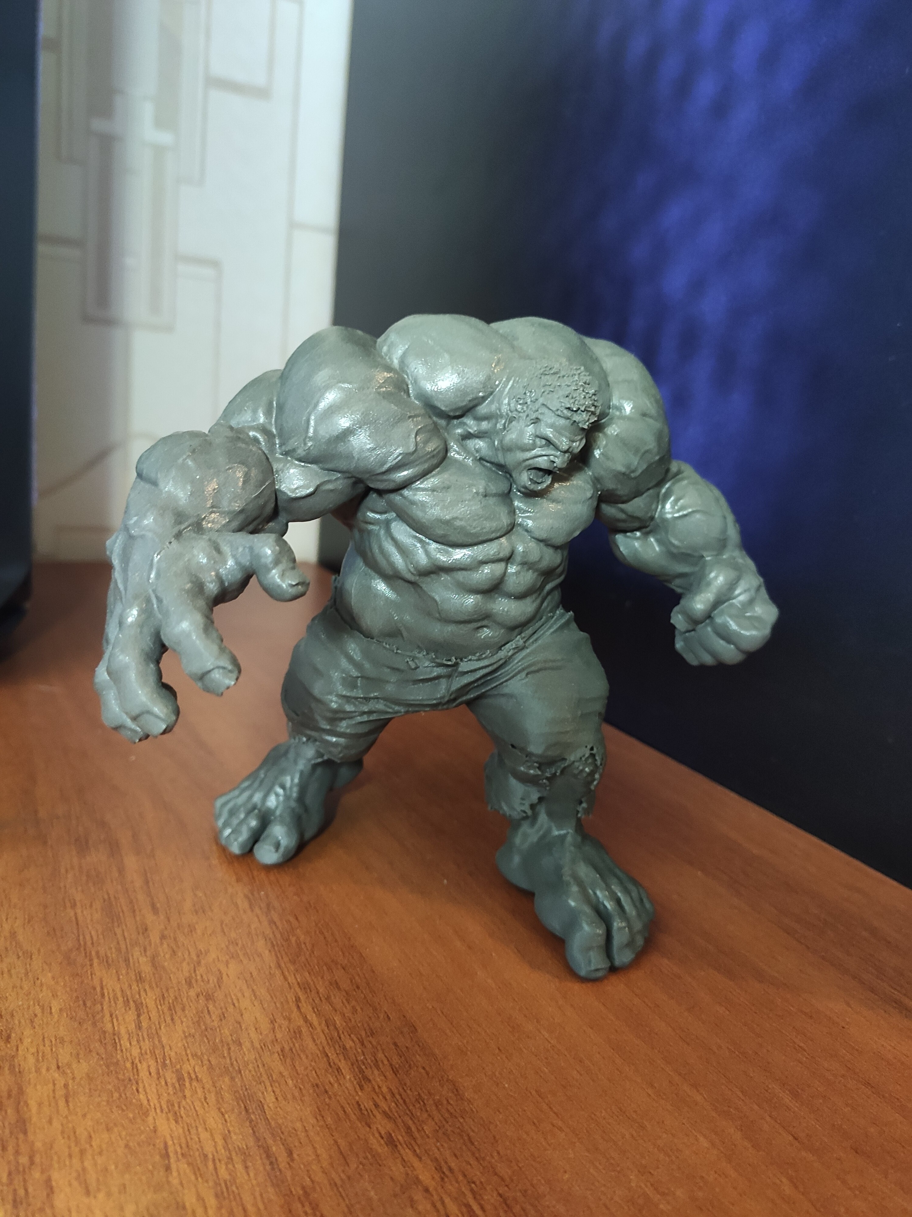Части печататлись с разными параметрами. Лицо отдельно с высотой слоя 0,1. Остальные части с высотой 0,15.