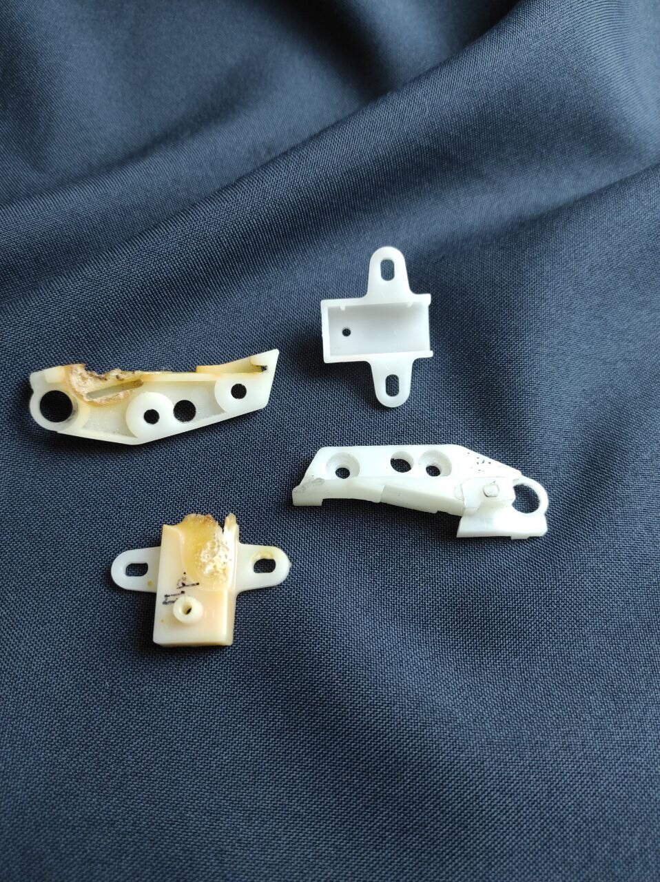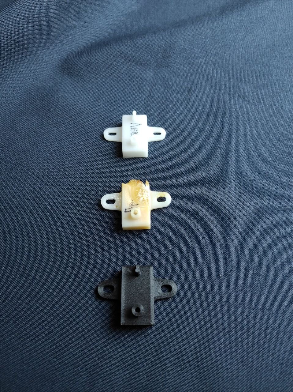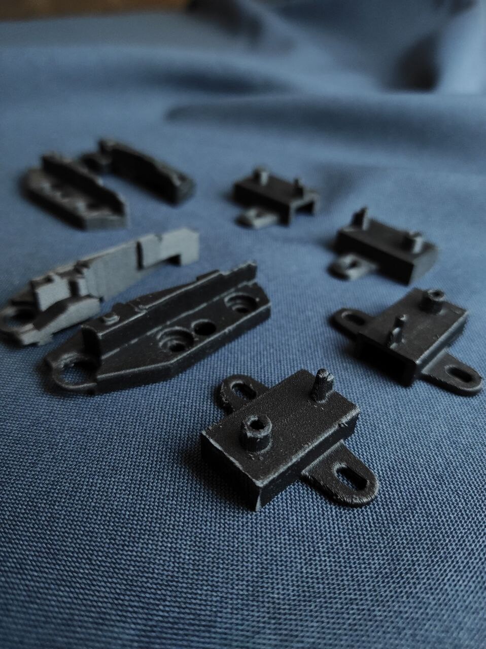 К нам обратилась трикотажная фабрика с целью найти новые возможности производства деталей для импортного оборудования. В качестве образца предоставили сгоревший при неправильной установке оригинал и совершенно новые детали. Смоделировали по образцу, напечатали из PA-CF.
